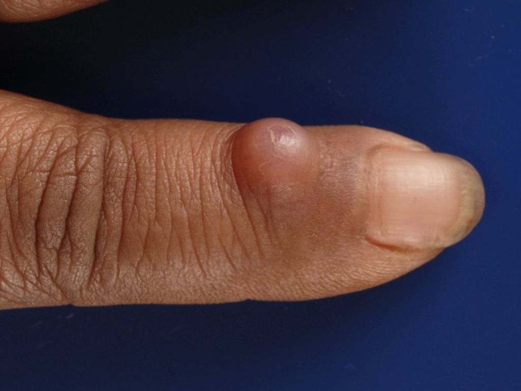 visceus vocht. Als de cyste in de buurt van de nagel zit, kan er door druk op