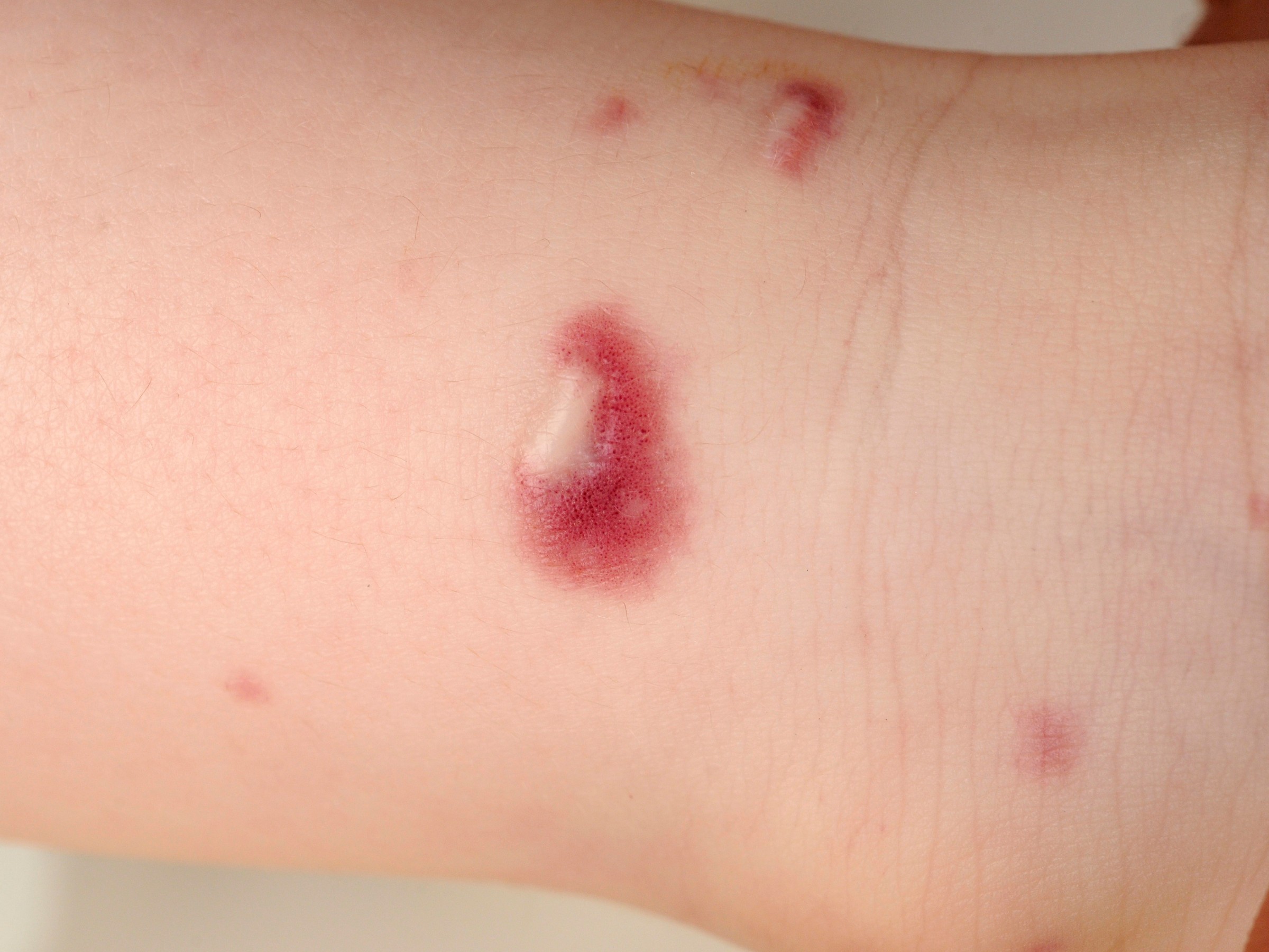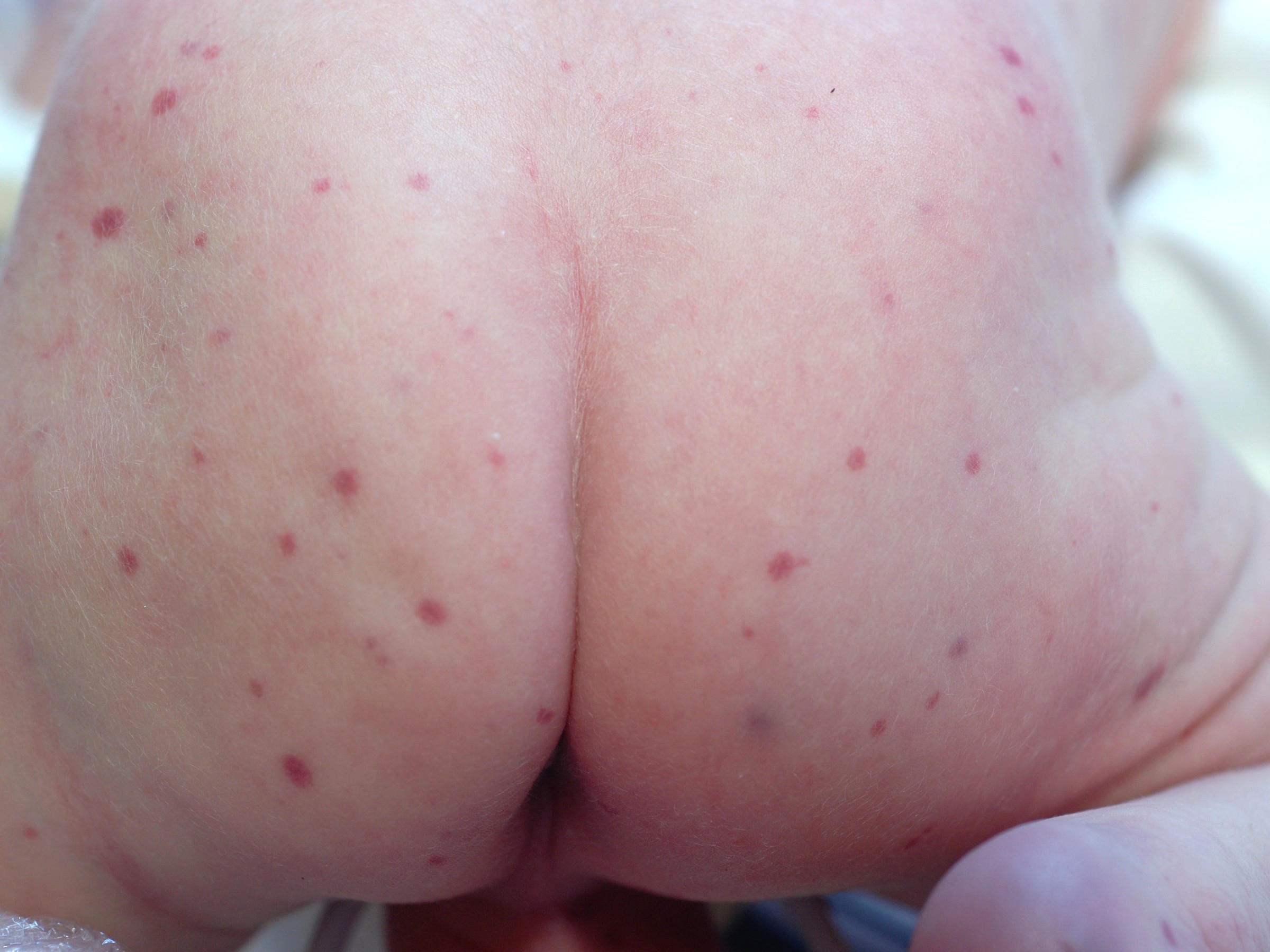 papels en plaques, verspreid over het gehele lichaam. De laesies zijn vanaf