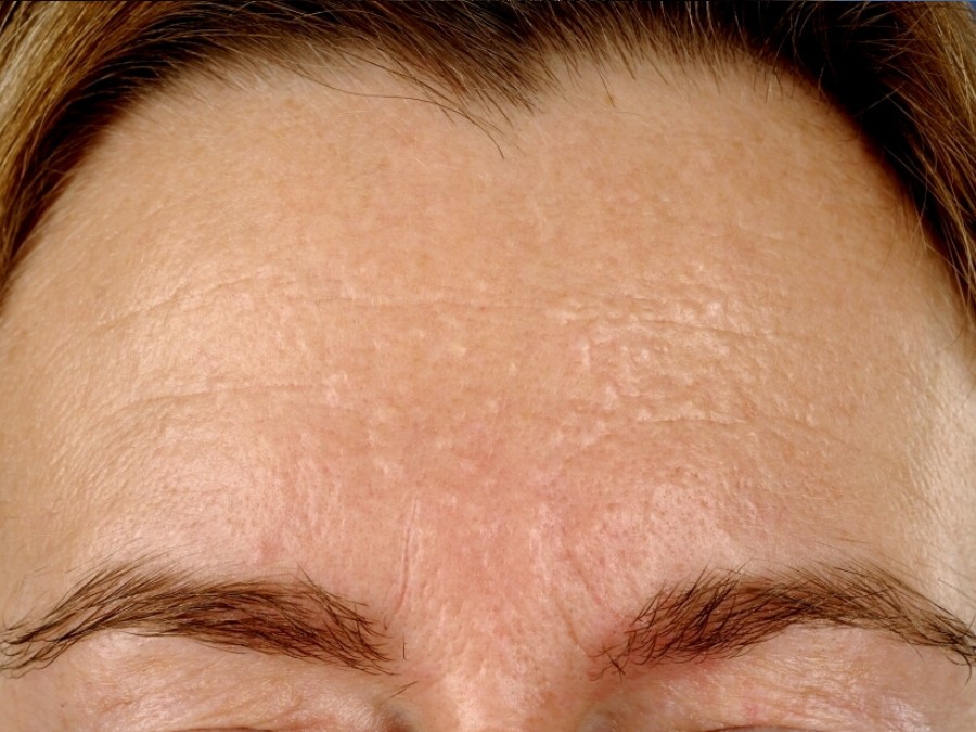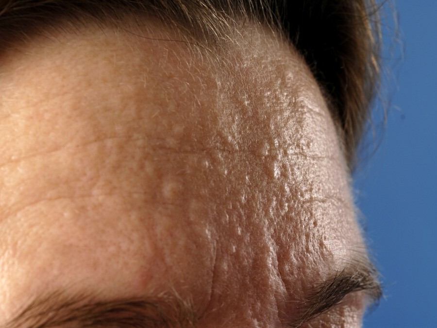voor op middelbare leeftijd, en vooral in het gelaat (voorhoofd, wangen). Het