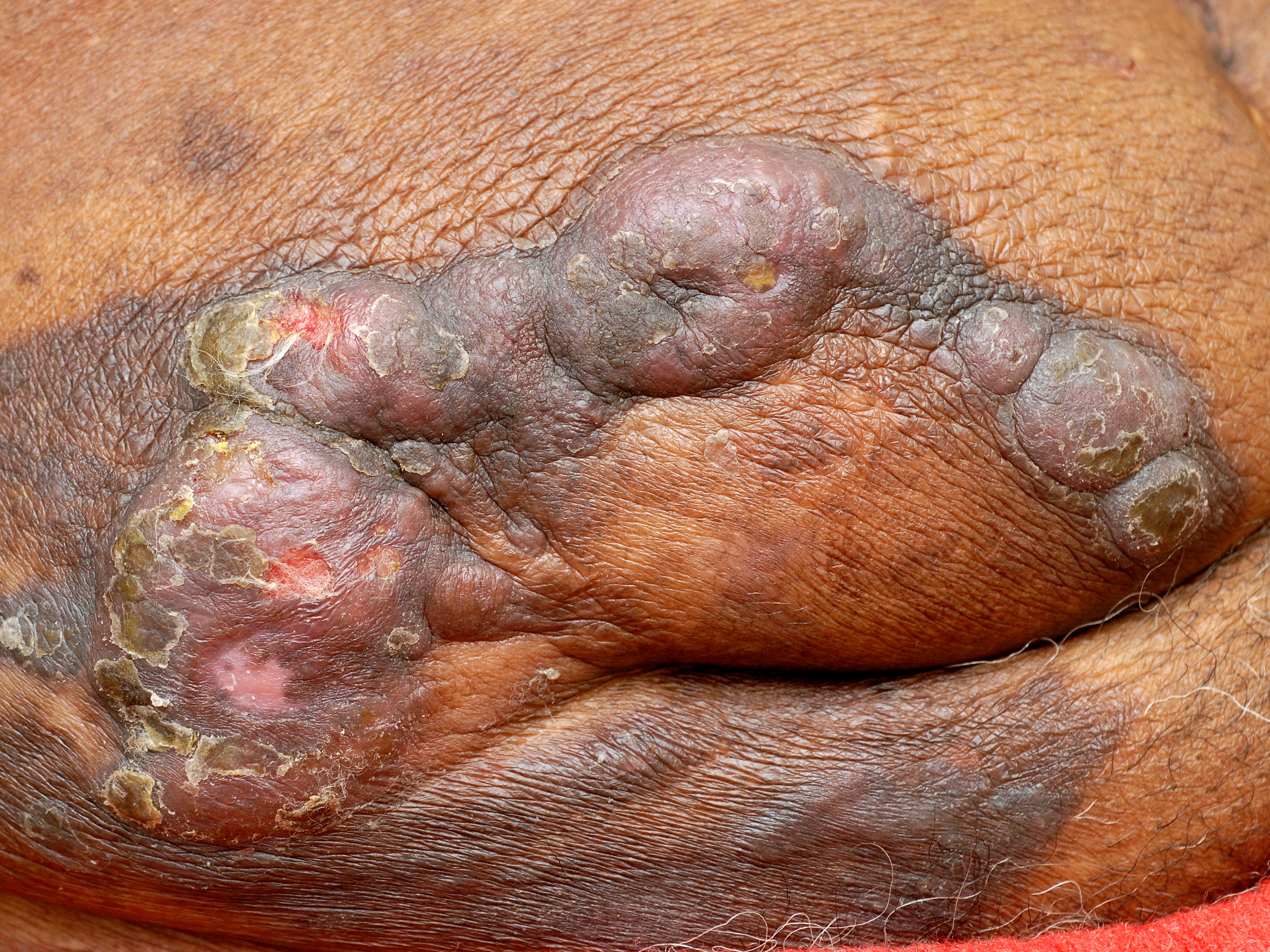 ![Mycosis fungoides, tumor stadium (click on photo to enlarge) [source: www.huidziekten.nl] Mycosis fungoides, tumor stadium](../../../images/mycosis-fungoides-tumoren-3z.jpg) |