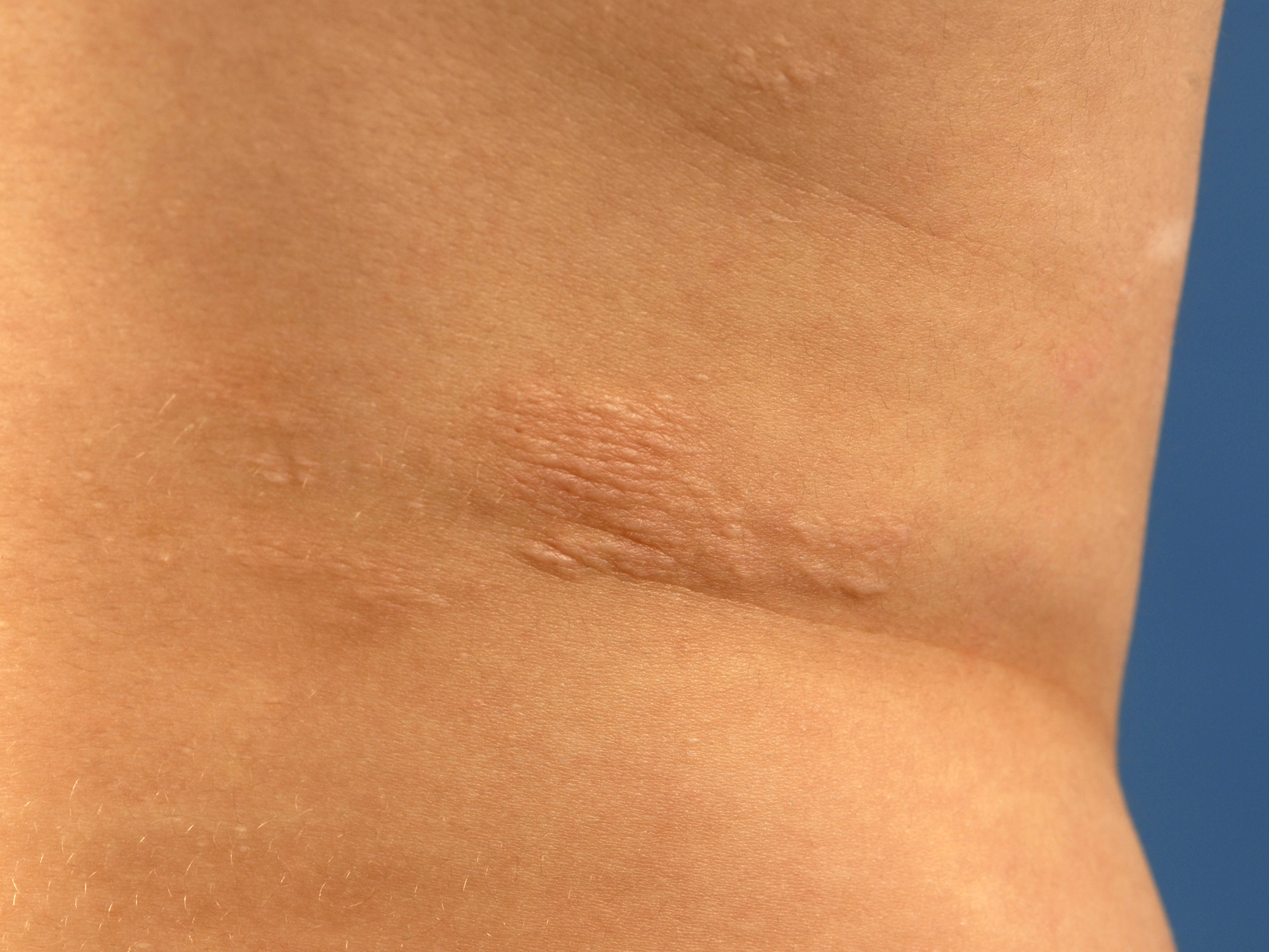 het lumbosacrale gebied. Het is een bindweefselnaevus, berustend op toename