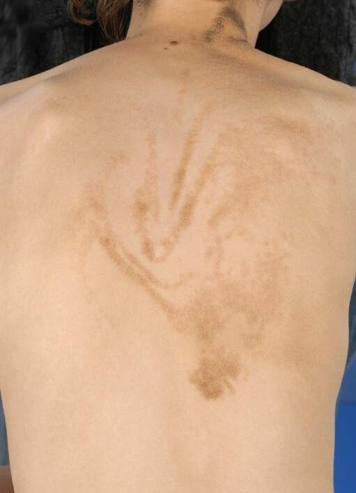 Bij de meeste lineaire epidermale naevi is de mutatie alleen aanwezig in de