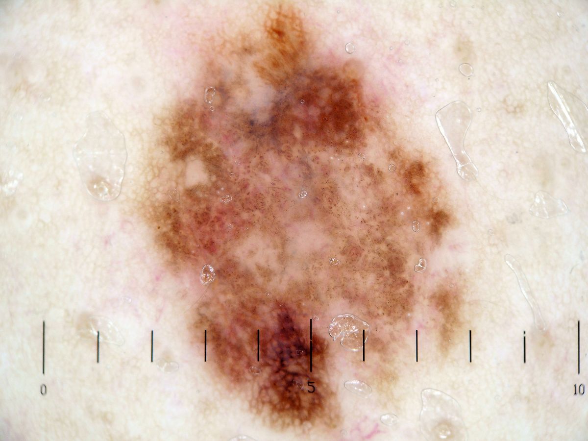 geen naevus maar een goedaardige pigmentvlek (alleen een macula), door zonlicht