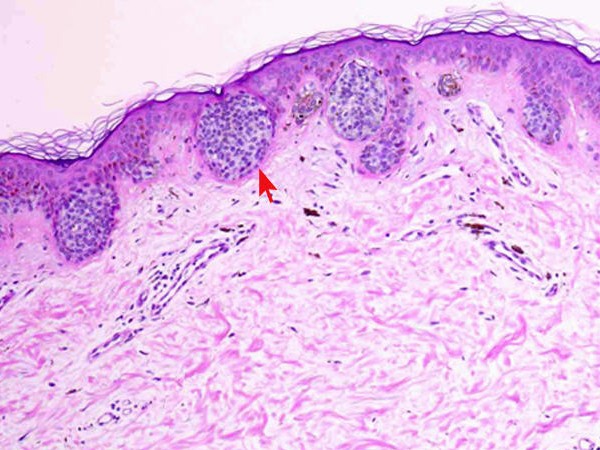 marginalis): opeenhoping van naevuscellen in de epidermis