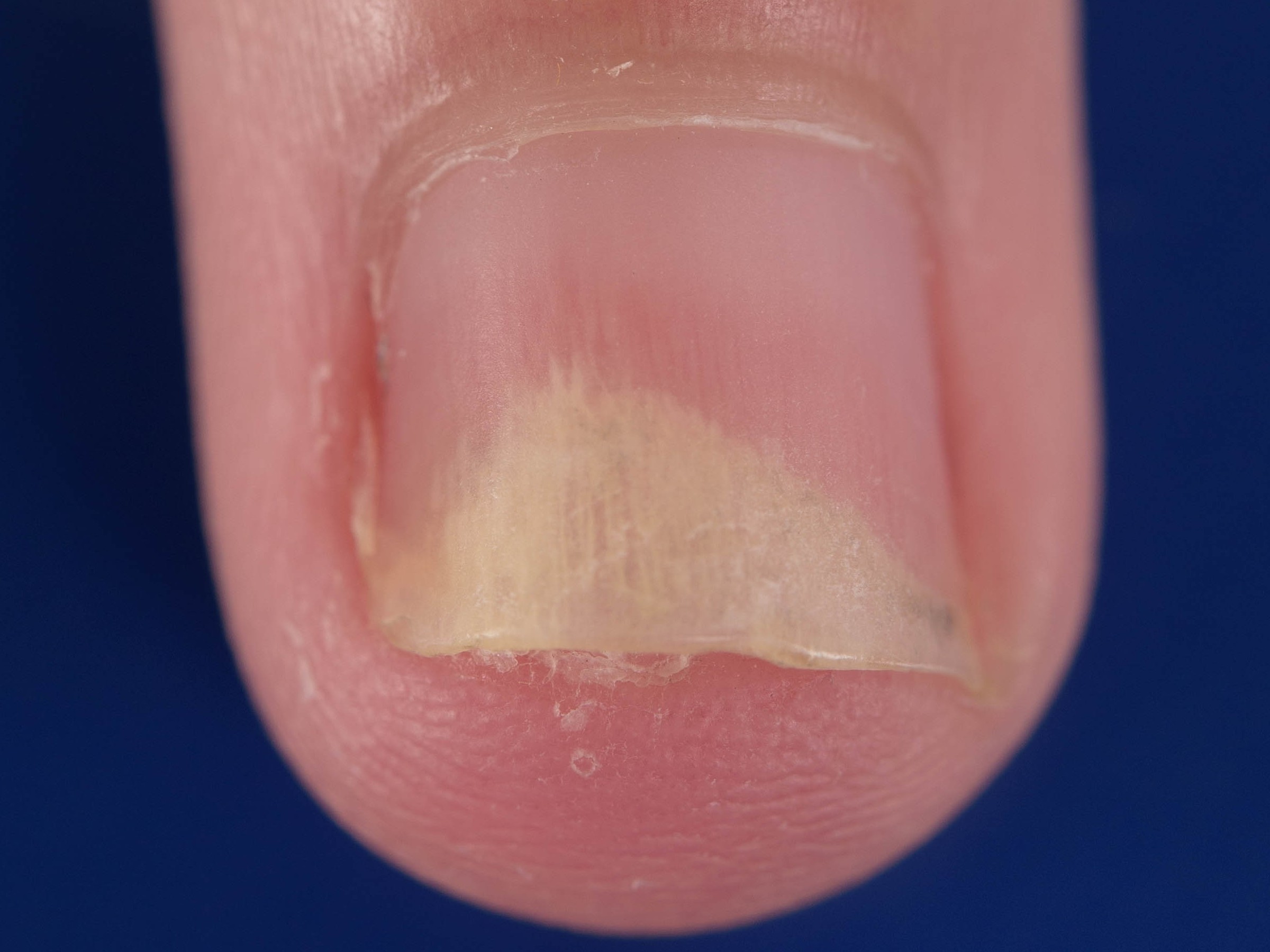 ![]() Proximale onycholysis Proxymale onycholysis betekent loslating van de nagel aan het proximale begin, bij de nagelriem. Het is zeldzaam, komt o.a. voor alopecia areata en bij groeistoornissen. Zie ook onder onychomadesis. |