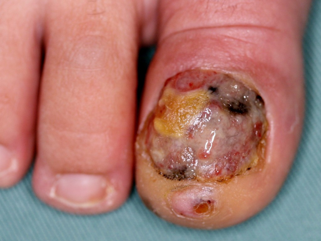 ![]() Plaveiselcelcarcinoom Een plaveiselcelcarcinoom kan onder de nagel groeien en die compleet destrueren. Wordt vaak pas laat herkend, moeilijk te onderscheiden van een verruca vulgaris. |