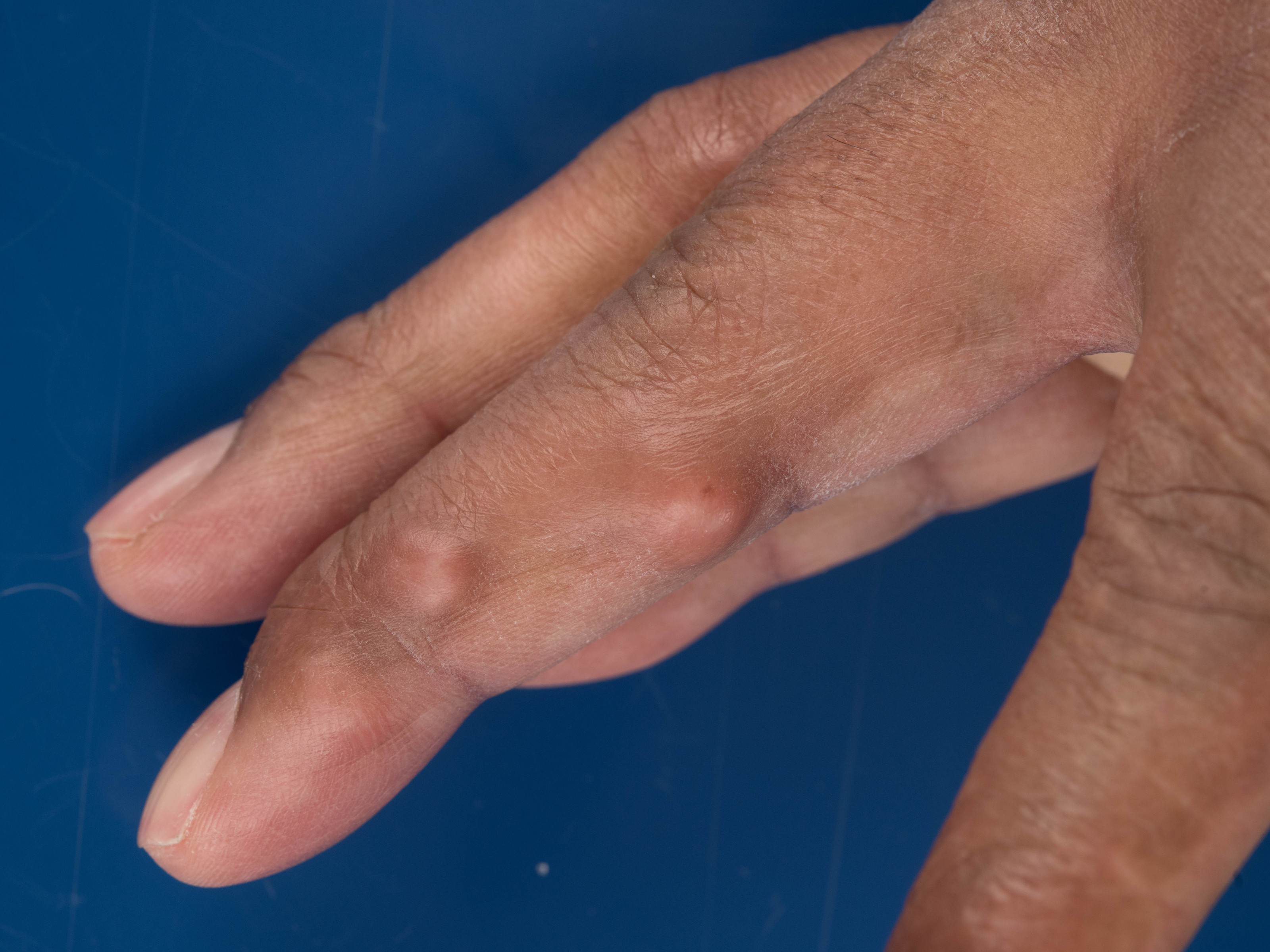 reuma knobbel, rheumatoid arthritis nodule) is een subcutane zwelling, veroorzaakt