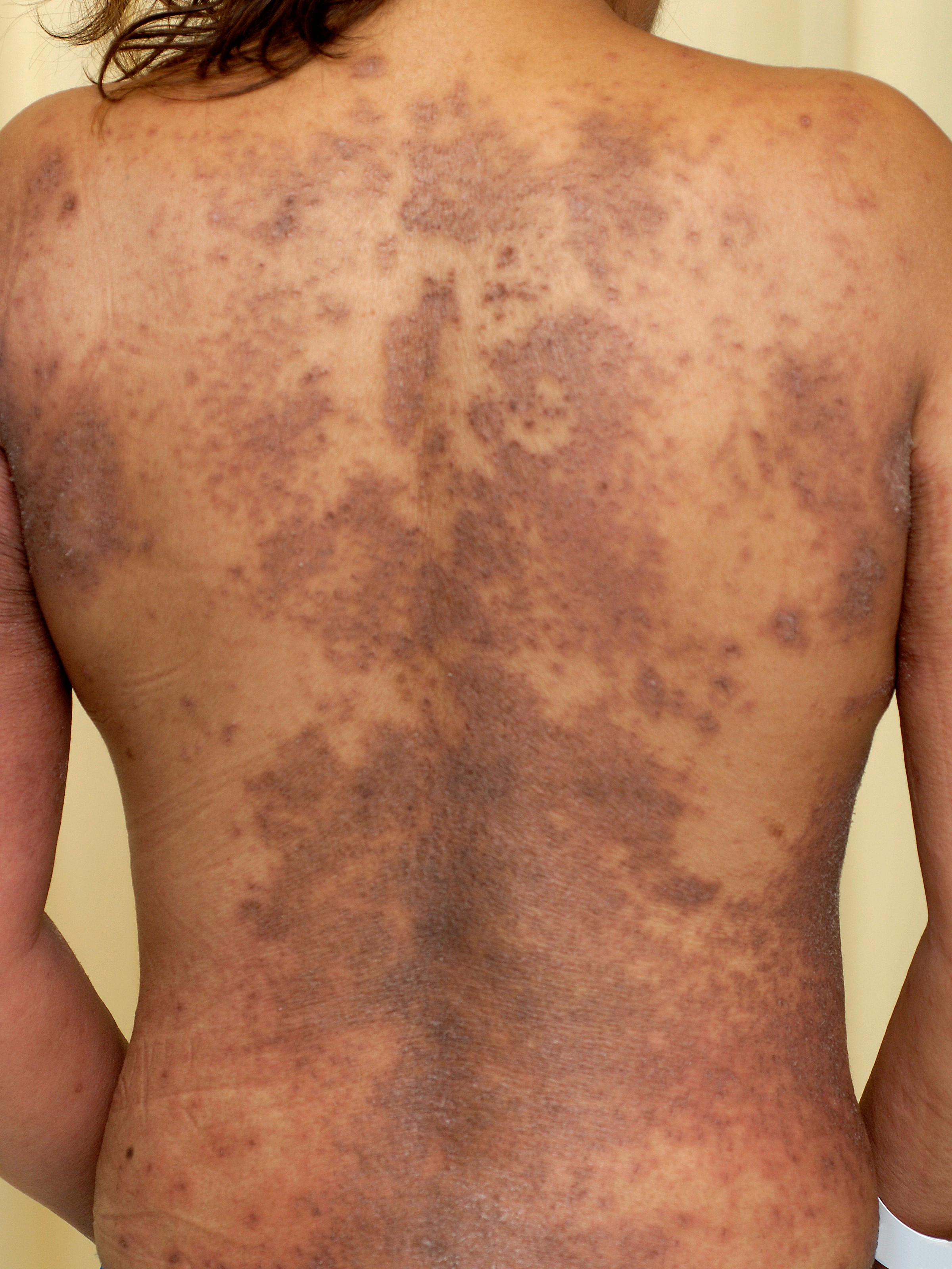het lichaam voorkomen maar de voorkeurslokalisaties zijn de handruggen, gelaat,