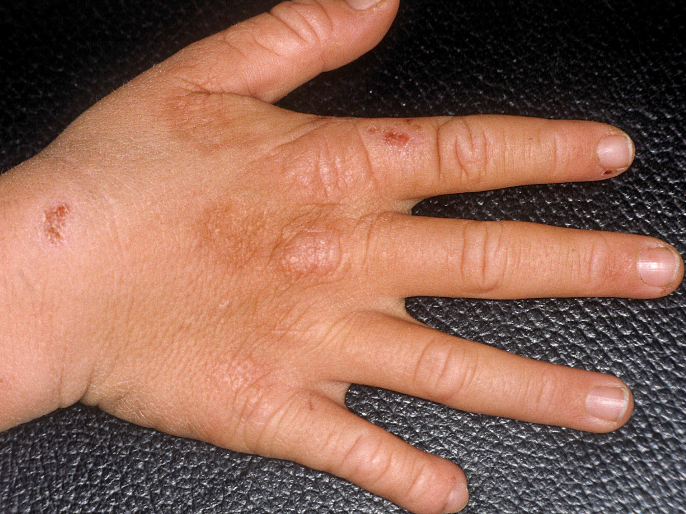 vesikels en bullae, huid fragiliteit, erosies, korsten milia, littekenvorming