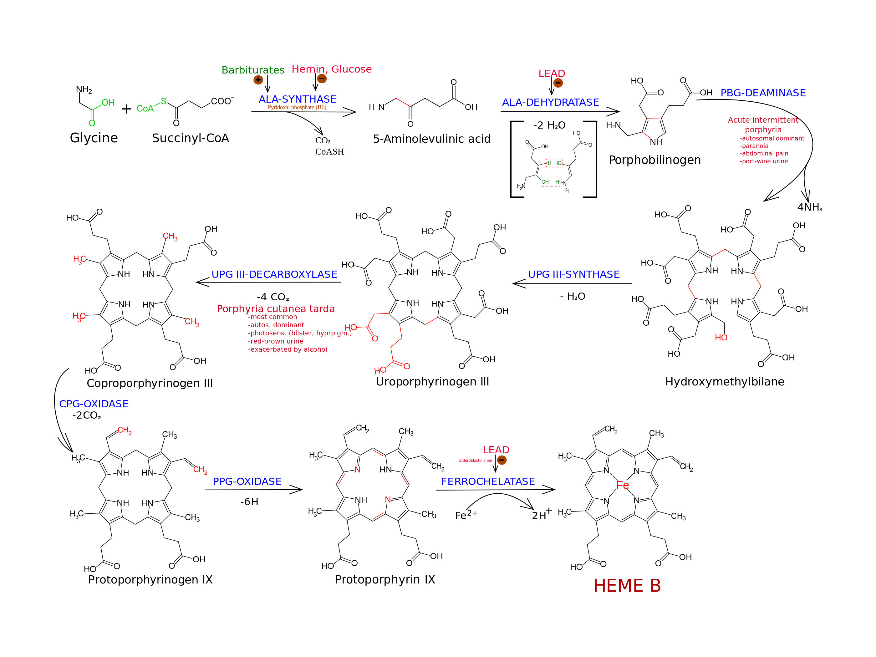 Porphyrinen metabolisme. Illustratie: MrNerdy - Wikimedia (Creative