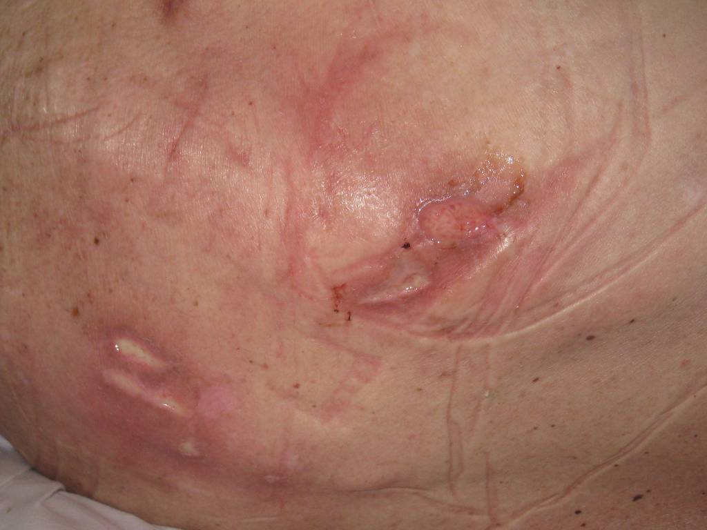 dd) verbandwisseling met NaCl gazen komt men al ver. Nog beter is het om producten