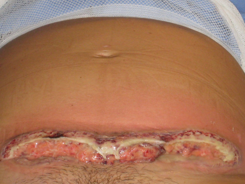 ![Pyoderma gangrenosum na keizersnede, bij verdenking op anti-fosfolipiden syndroom (click on photo to enlarge) [source: www.huidziekten.nl] Pyoderma gangrenosum na keizersnede, bij verdenking op anti-fosfolipiden syndroom](../../../images/pyoderma-gangrenosum-2z.jpg) |