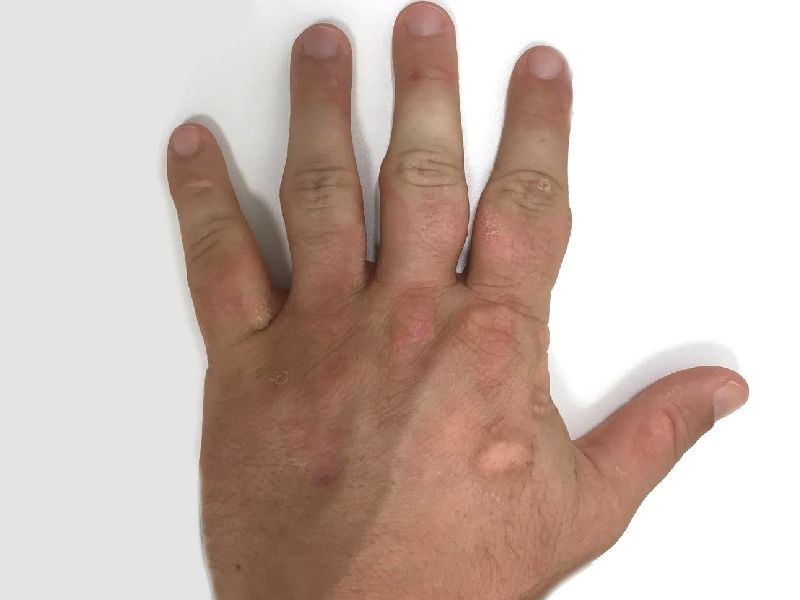handrug. De overliggende huid kan ook verdikt zijn, soms gaat het gepaard met