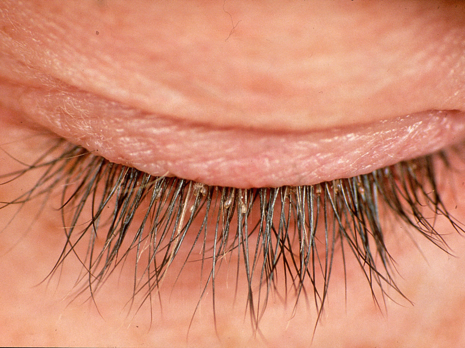 van de gastheer, maar ze kan in zeer zeldzame gevallen ook voorkomen op de wenkbrauwen,