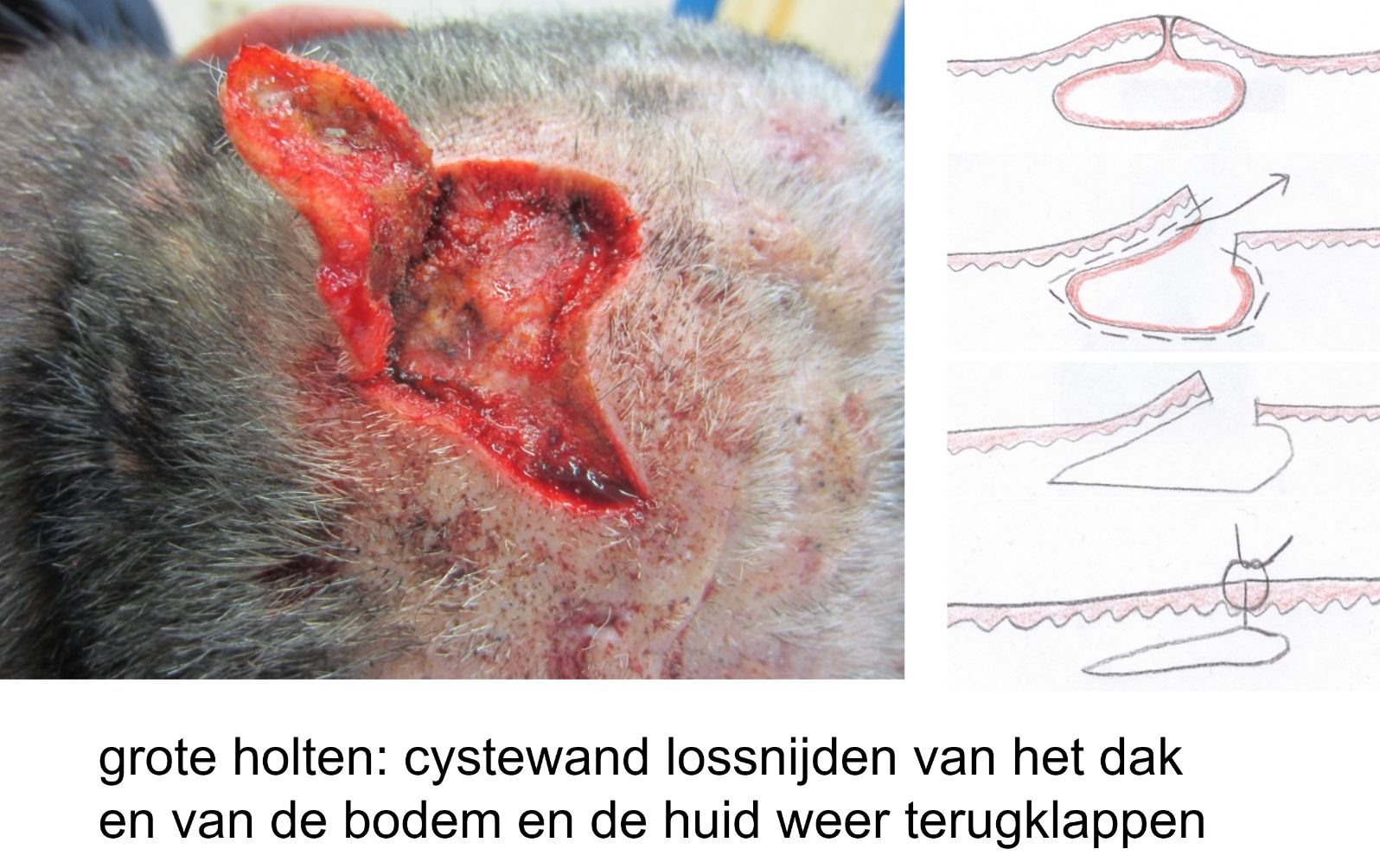 verwijderen van abcesholten en fistels (sequentiële excisies, holten in etappes