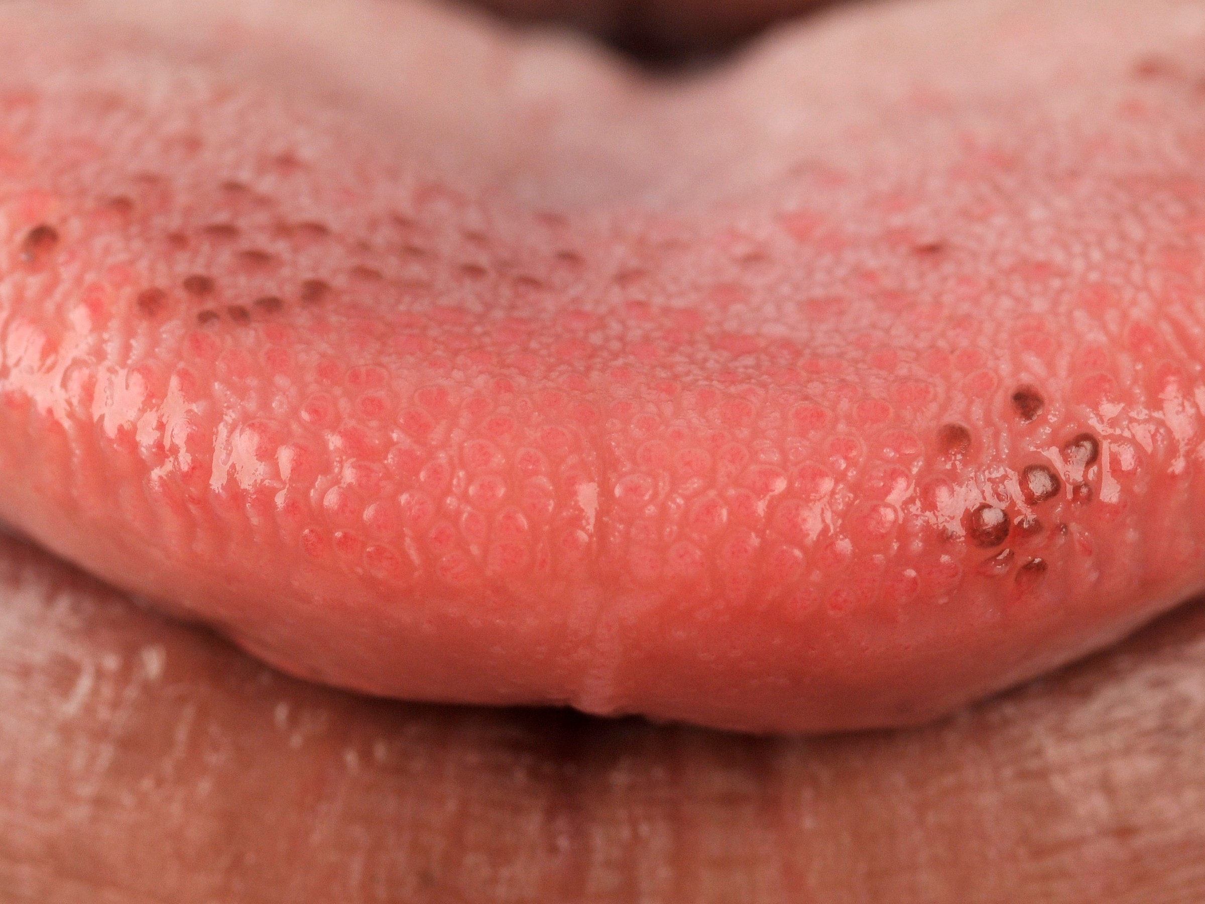patches on the tongue of a young girl. Pigmented fungiform papillae