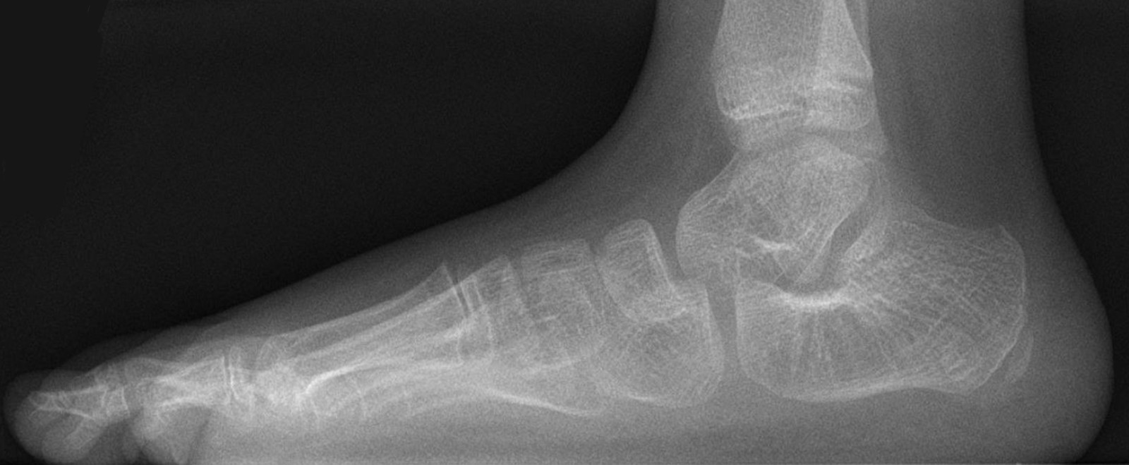 Radiologisch als een denkbeeldige as die door het midden van de talus wordt