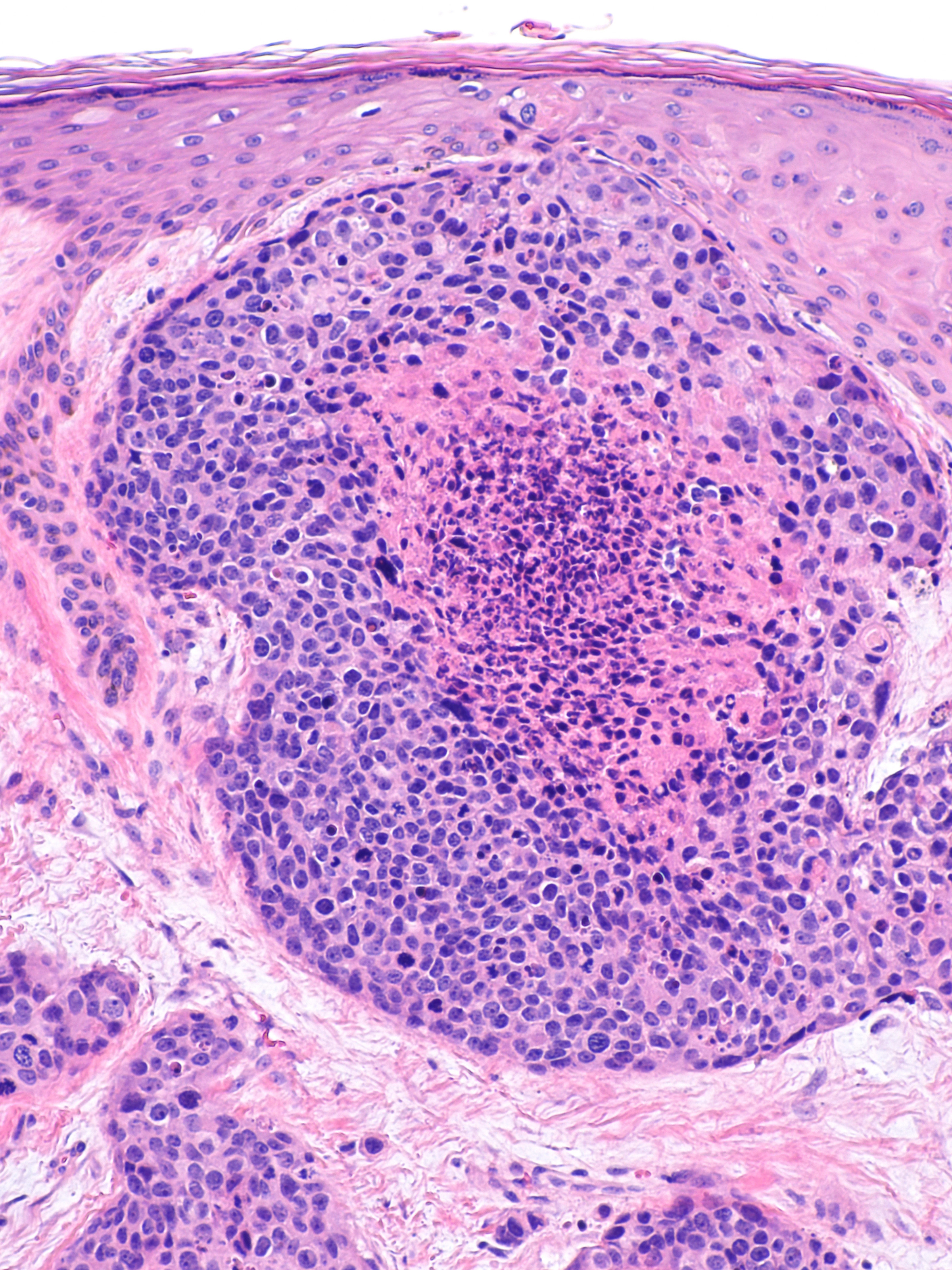 ![Porocarcinoom ontstaan in een eccrien poroma (click on photo to enlarge) [source: Michael Bonert (Nephron) - Wikimedia - Creative Commons License 3.0] Histologie porocarcinoom](../../../images/porocarcinoom-4z.jpg) |