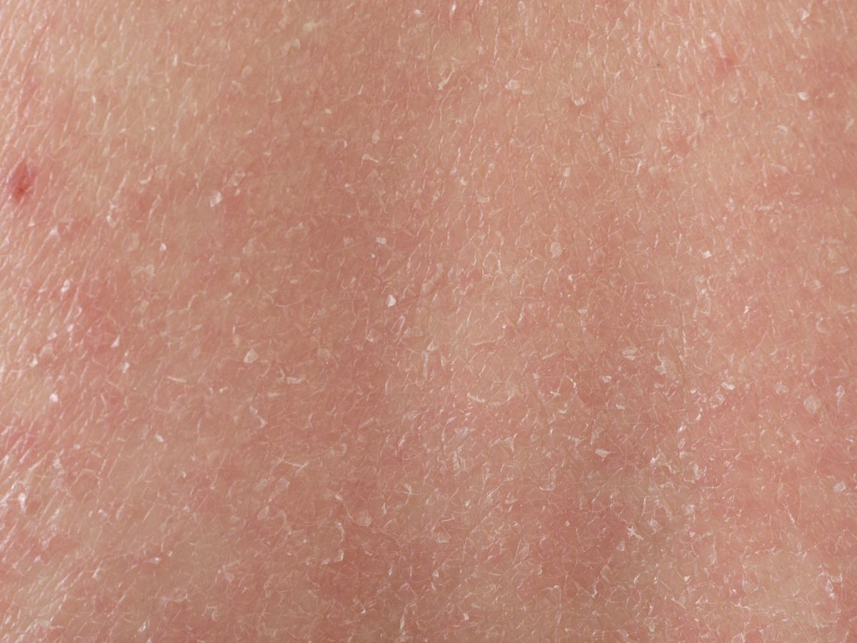 schilfering, vooral op de romp en de onderbenen, en soms wat hyperkeratose aan