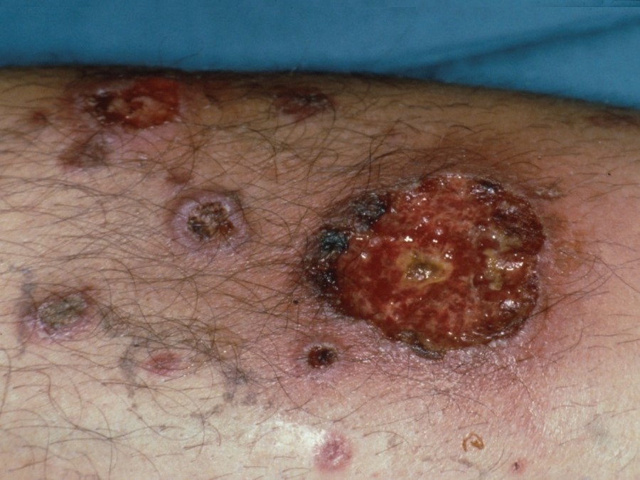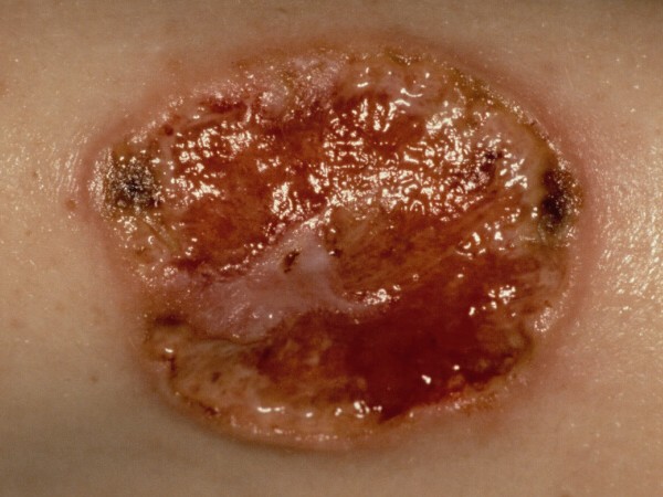 de zogenaamde gummateuze ontstekingsreacties. De primaire laesie (ulcus of sjanker)