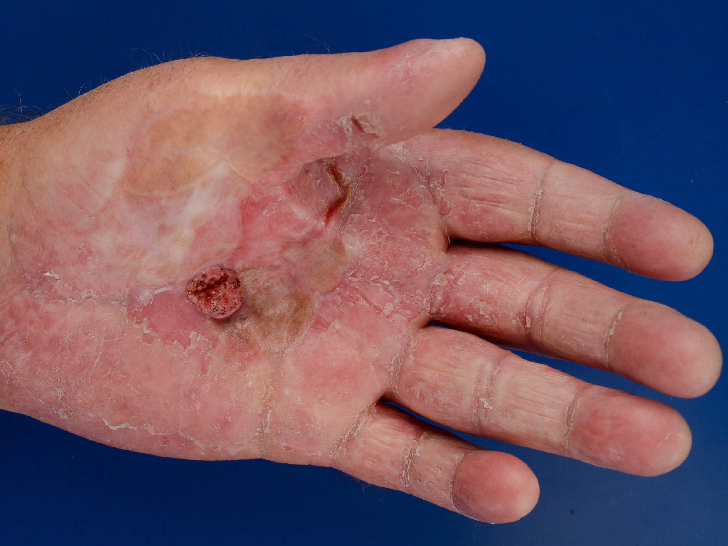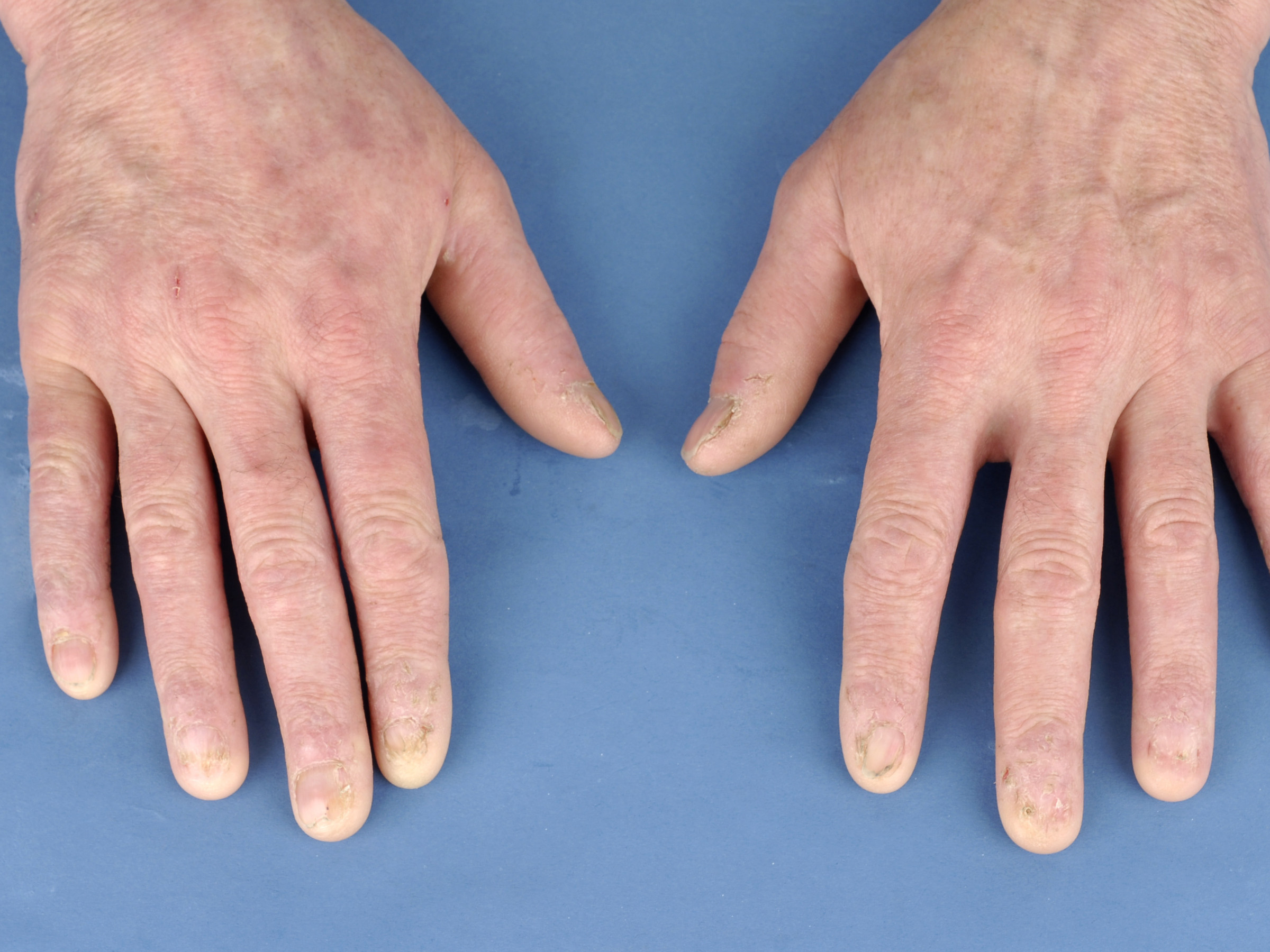 ontstond palmoplantaire hyperkeratose en nagelfragiliteit. Op 25-jarige leeftijd