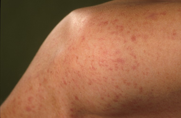 de romp, soms kunnen ook de ledematen aangedaan zijn. De handen en vooral de