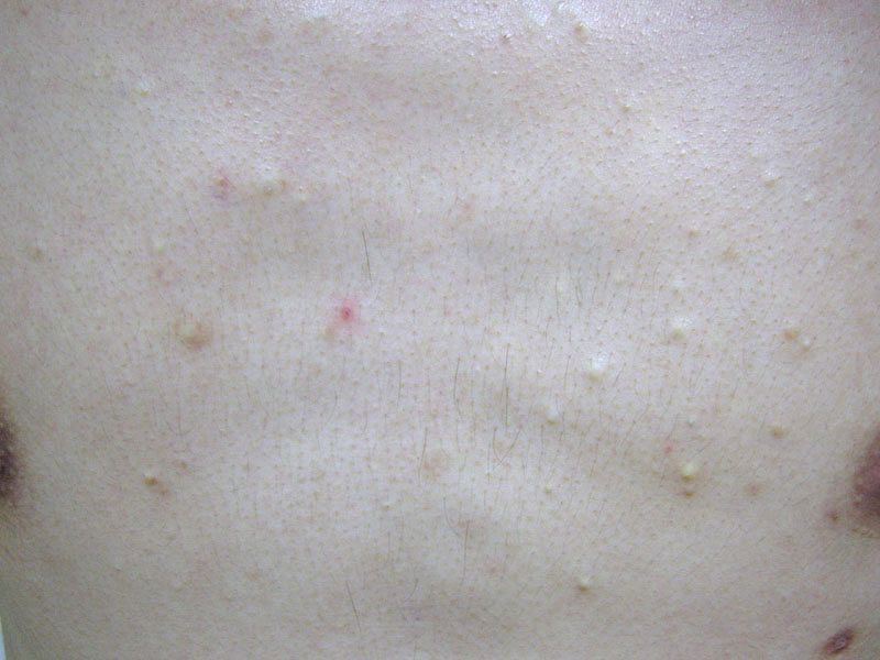 er enkele zijn of honderden. De cysten gaan uit van talgklieren die geen verbinding