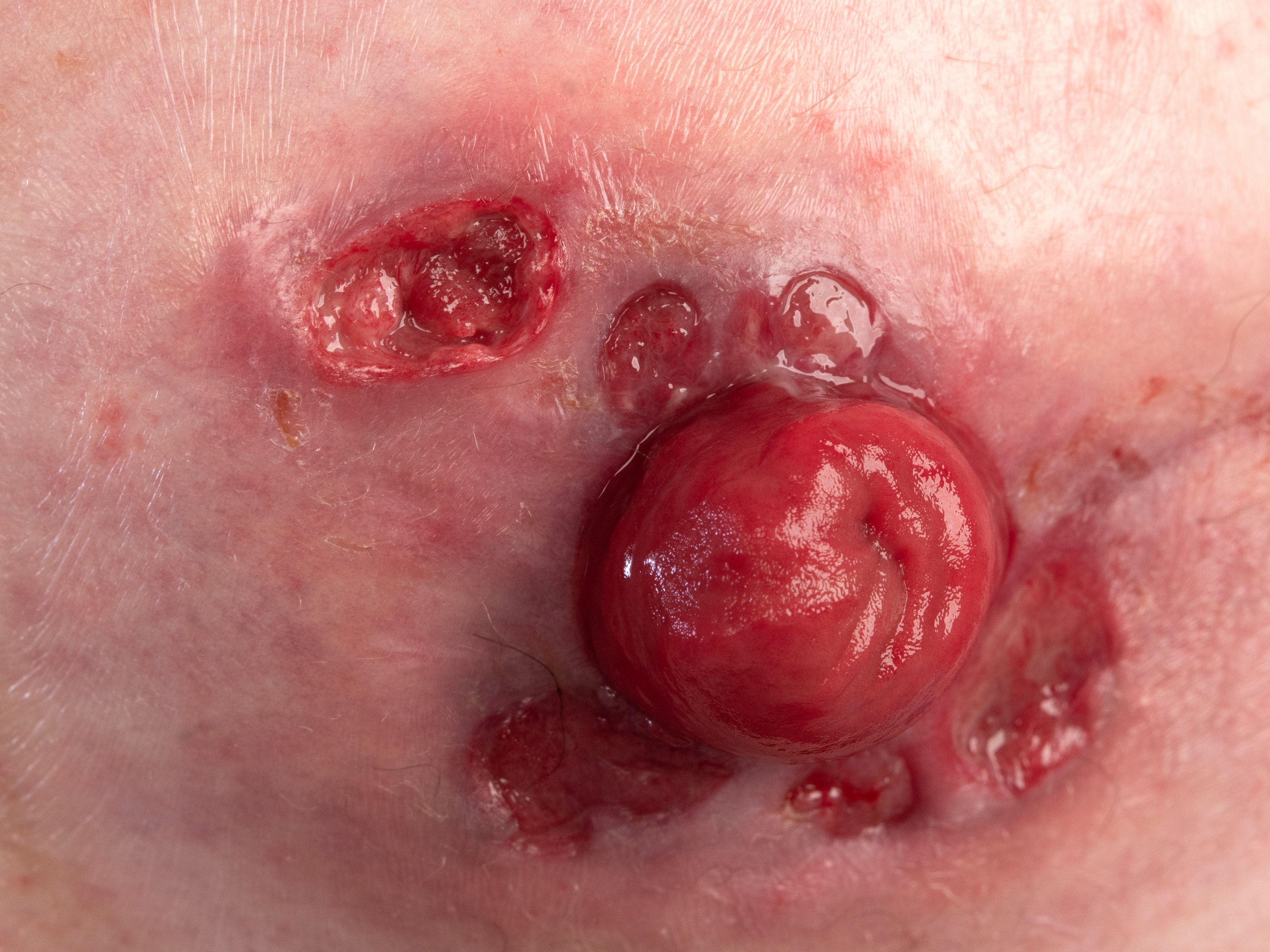 stoma opening. Rond een stoma kan de huid ernstig geïrriteerd raken door contacteczeem