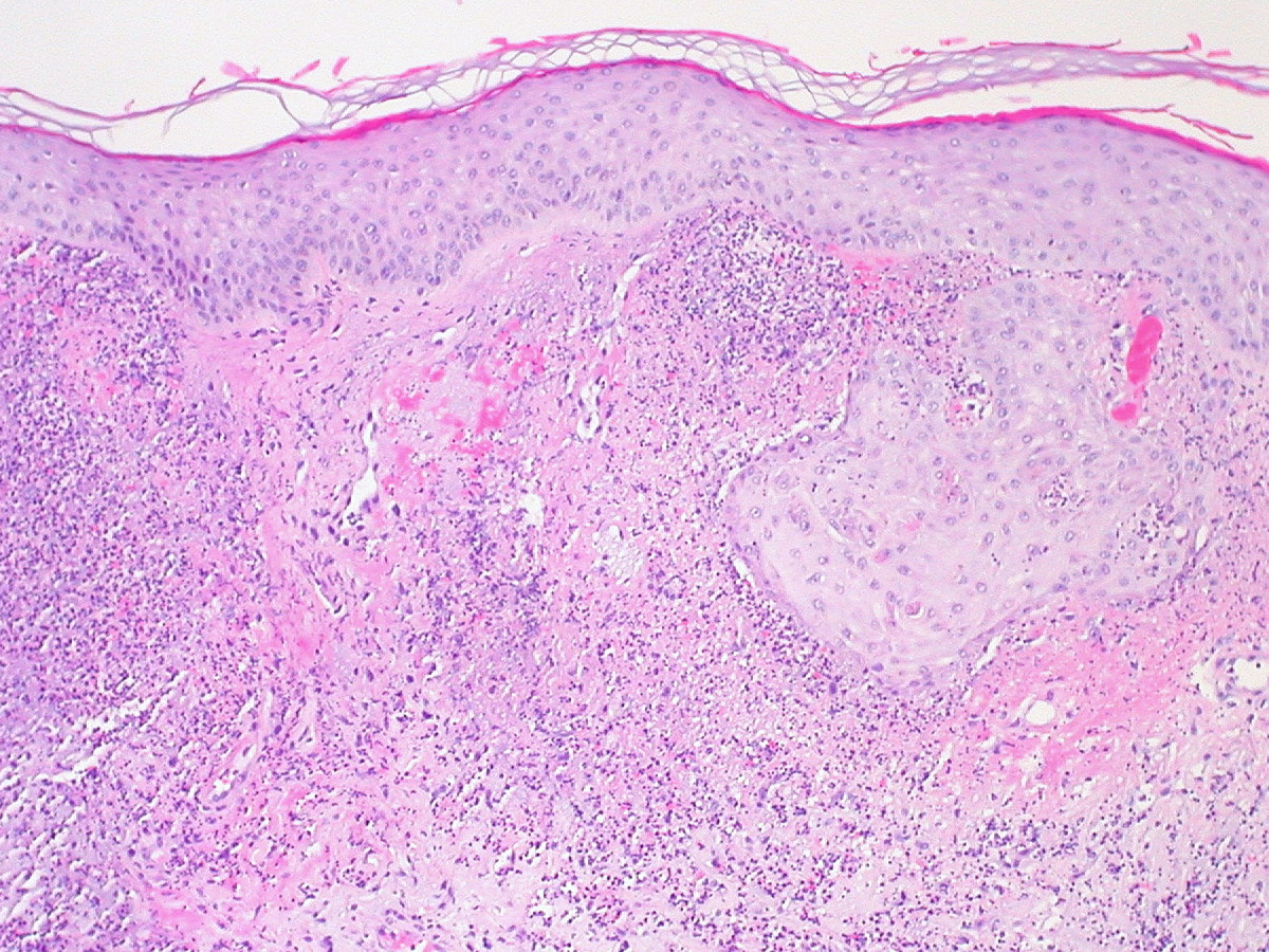 zijn van subcorneale pustels. In dieper gelegen nodulaire lesies kan het infiltraat