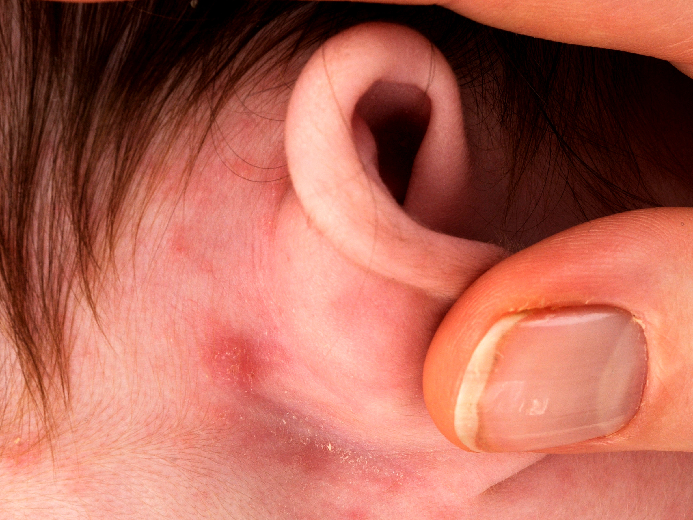 crustosa. Grote nodi op de nates, of in de liezen of oksels. Urticaria.