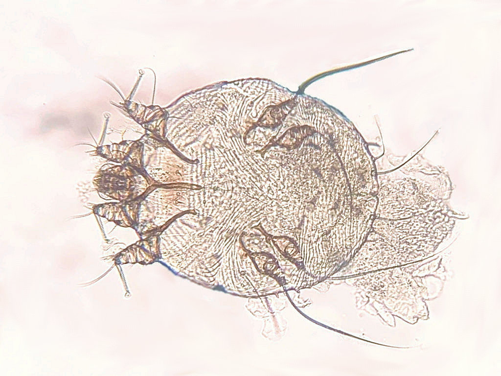 Schurftmijt onder de microscoop (KOH-preparaat) |