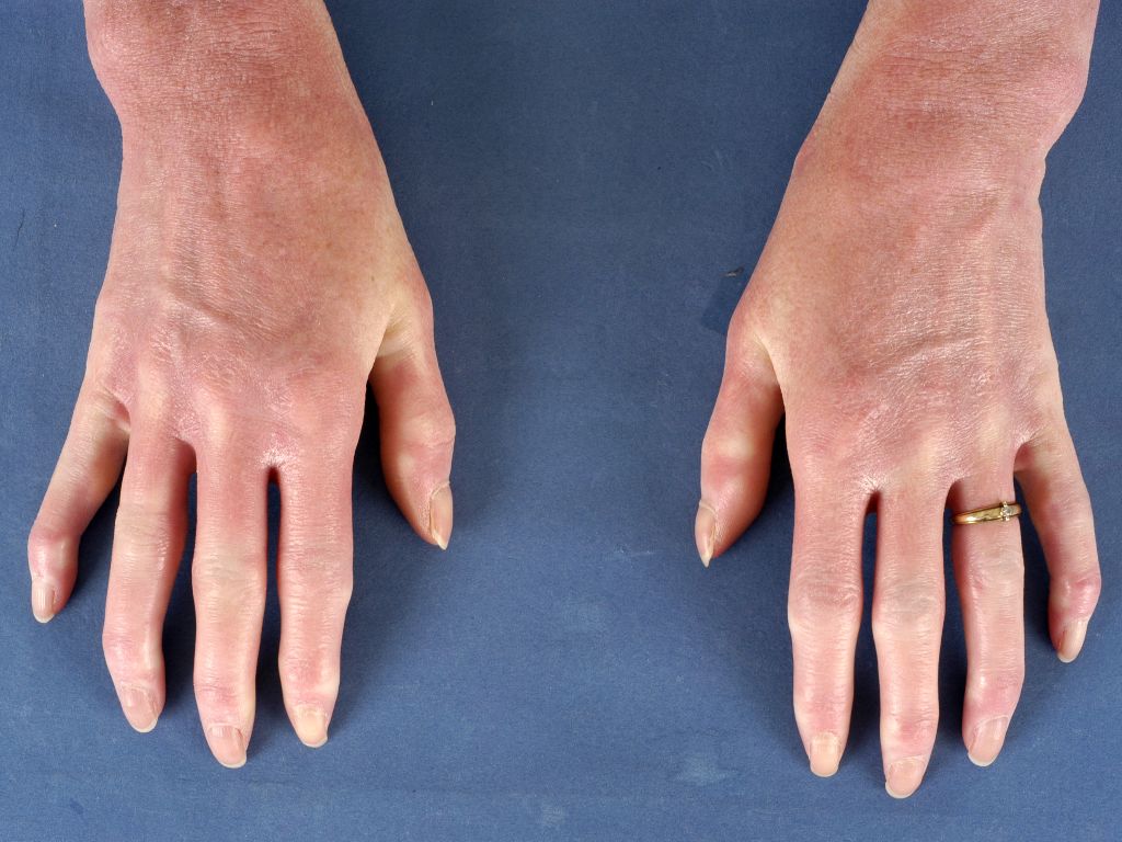 Er kunnen sclerodermie-achtige veranderingen optreden inclusief sclerodactylie