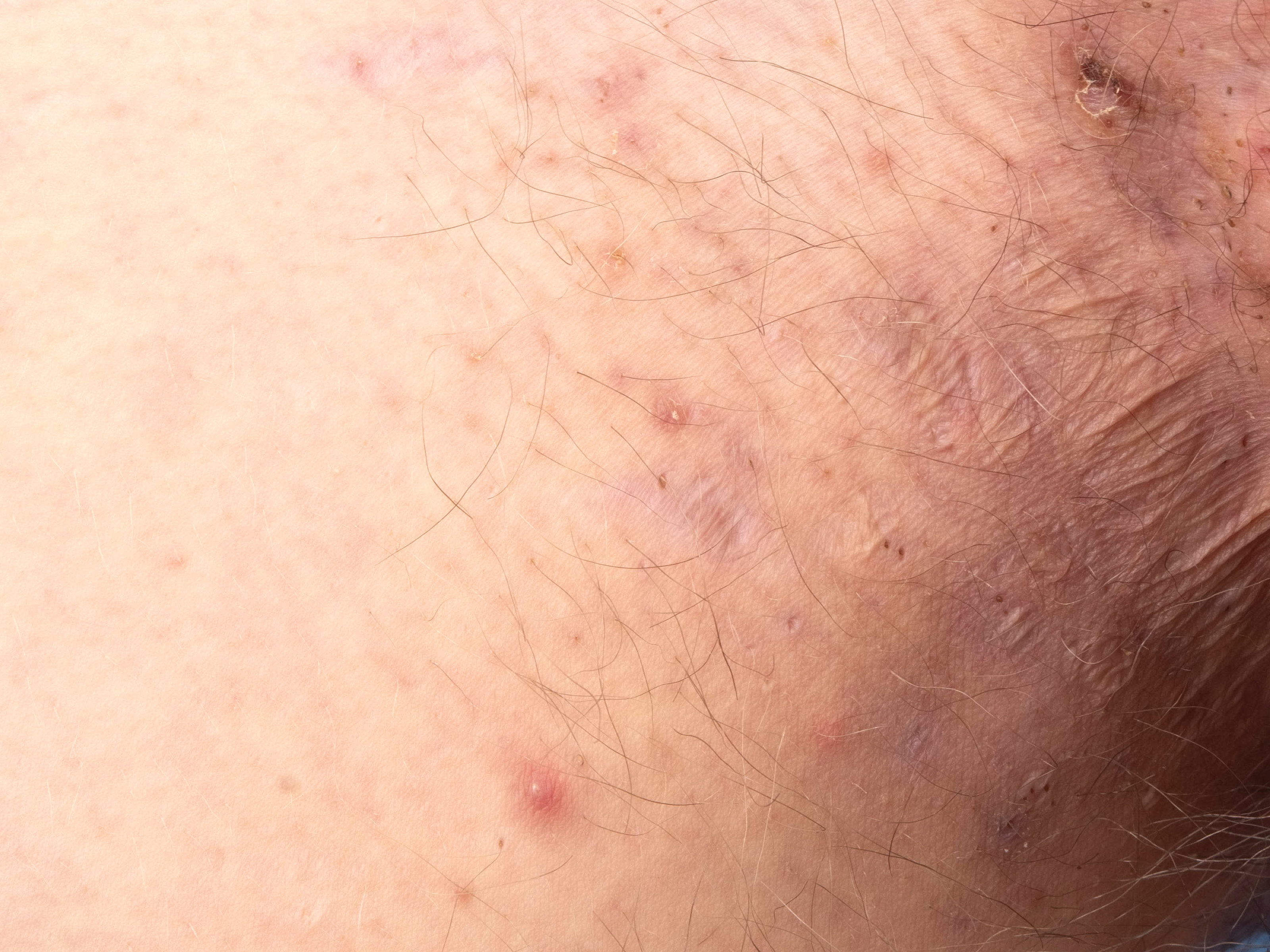 en het perineum, maar ook op de onderste ledematen, de voeten, en onder de nagels