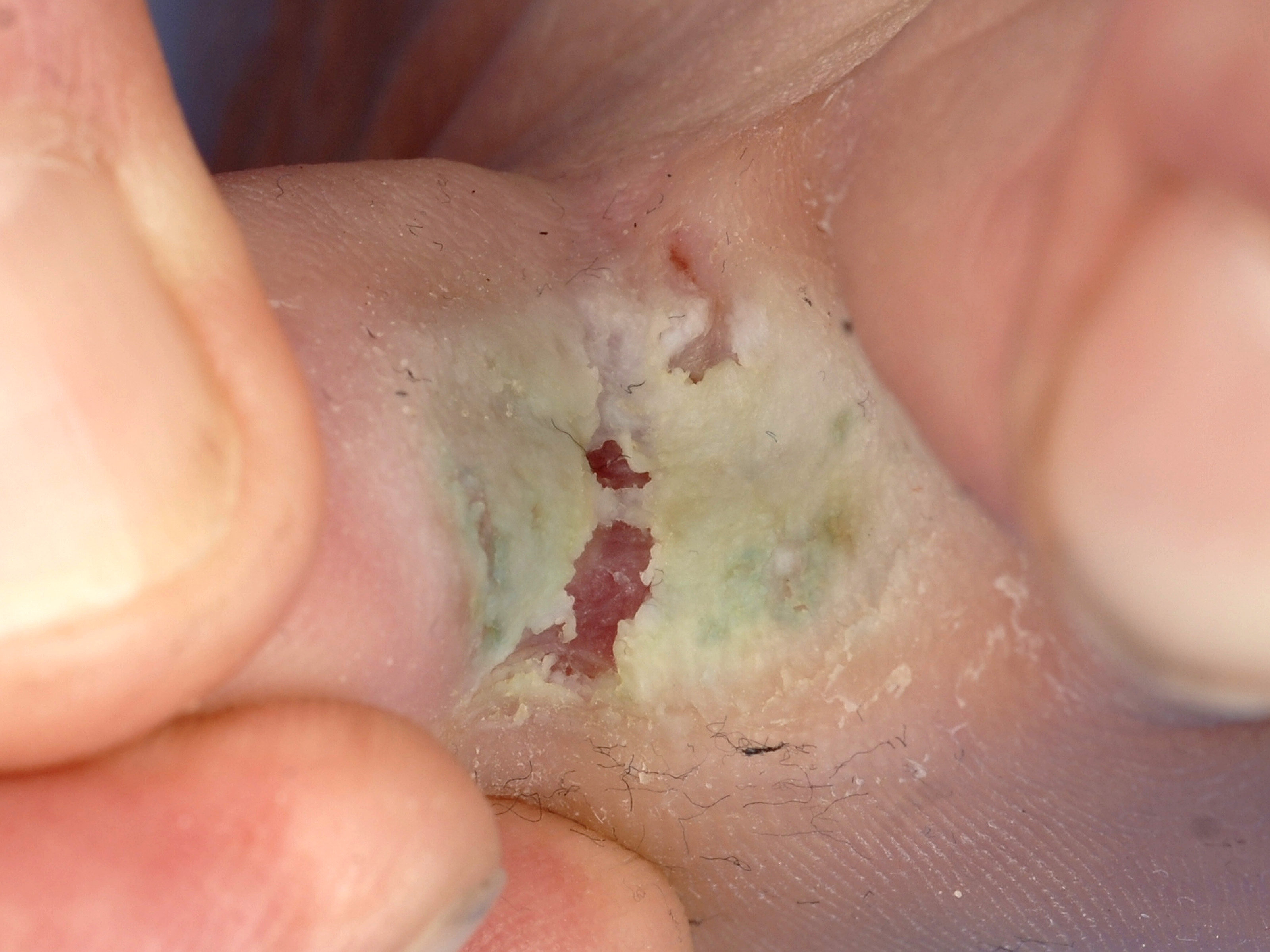 Diagnose:- Candida intertrigo (erosio interdigitalis), tinea pedis