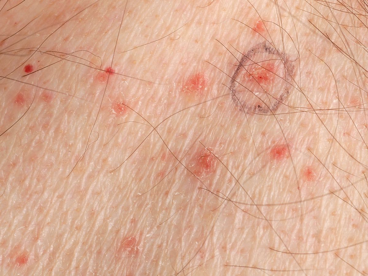 gezien het aantal laesies (maar soms zijn er talrijke laesies). De jeuk kan