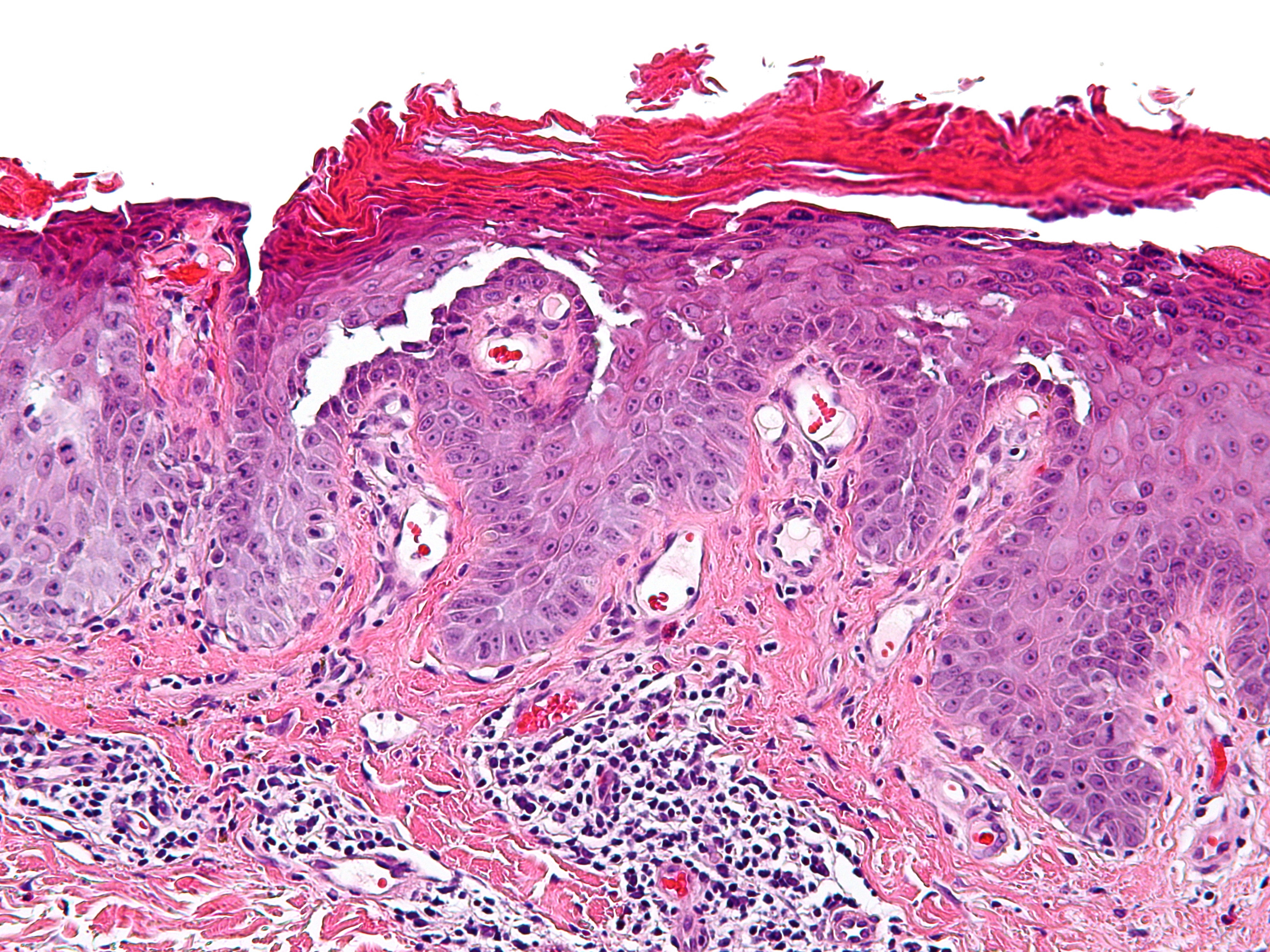 type toont de epidermis kenmerkende dyskeratose, terwijl deze bij de andere