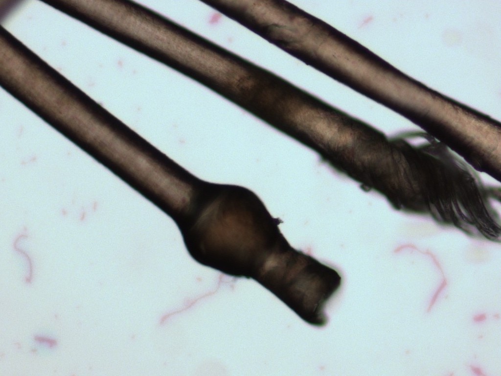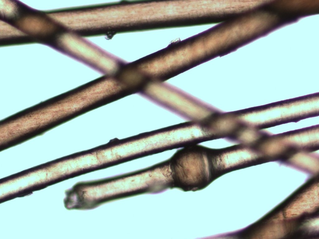 is het beeld onder de microscoop anders, daar zijn de haren in de knoop gespleten,
