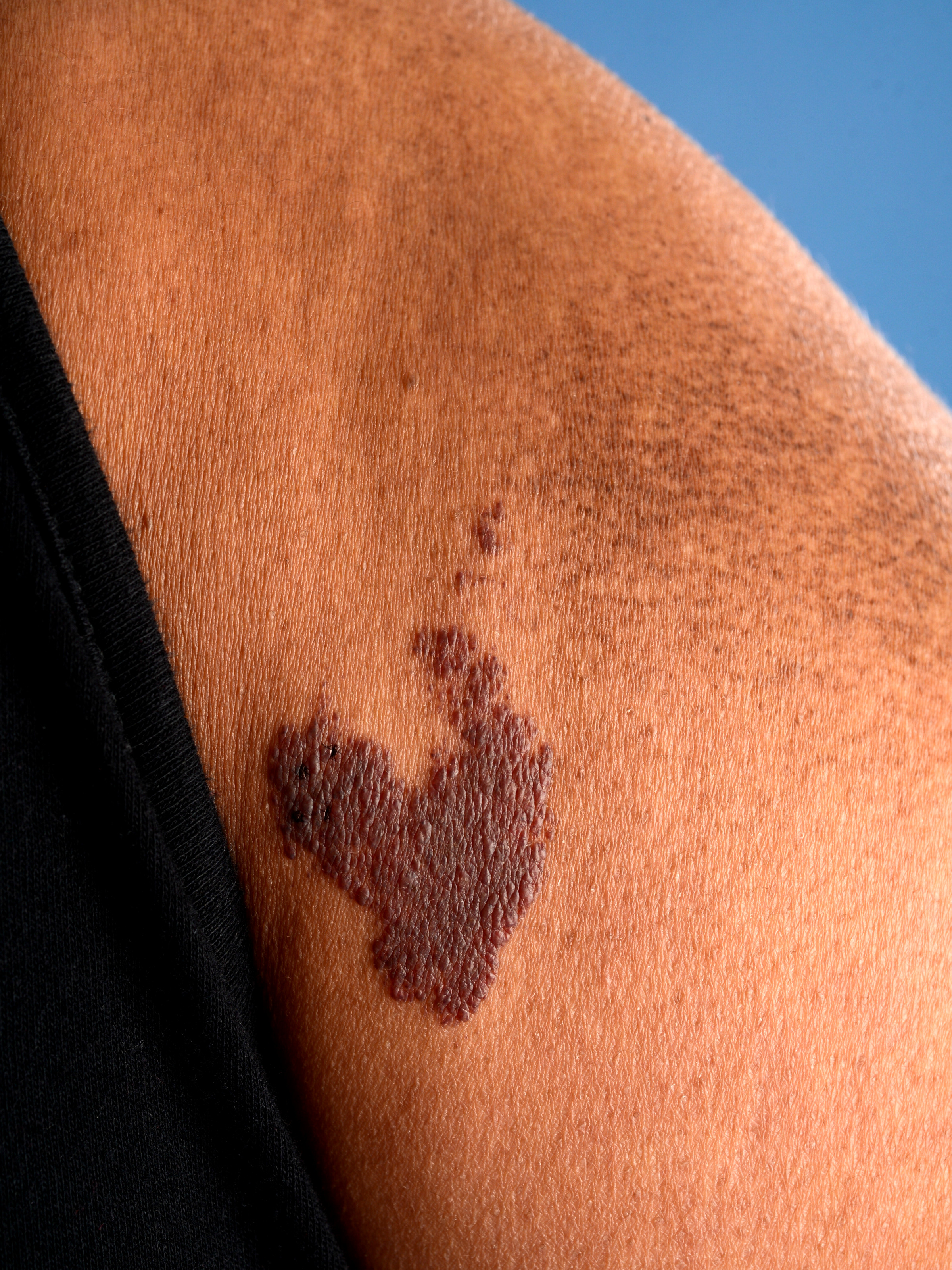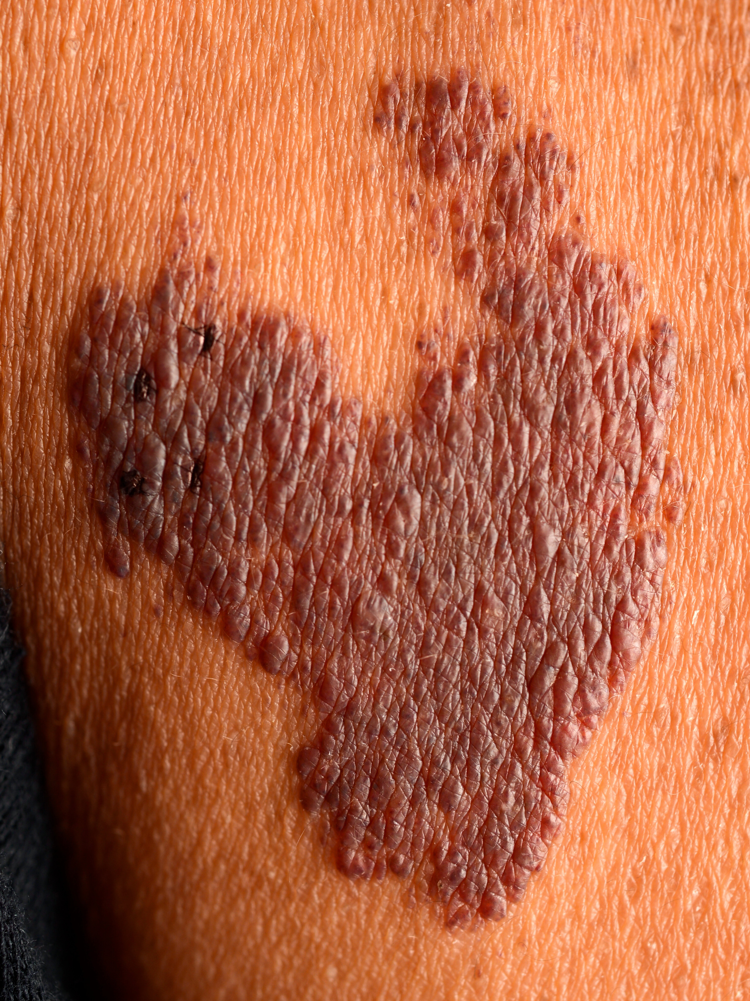 solitair, soms multipel, rond tot polycyclisch. Meestal op het bovenlichaam,