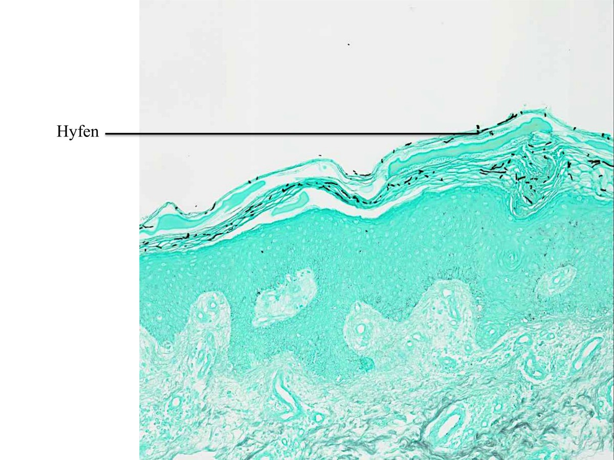 ![Dermatomycose, HE kleuring (click on photo to enlarge) [source: afdeling Pathologie, UMCU Utrecht] Dermatomycose, HE kleuring](../../../images/dermatomycose-HEz.jpg) |