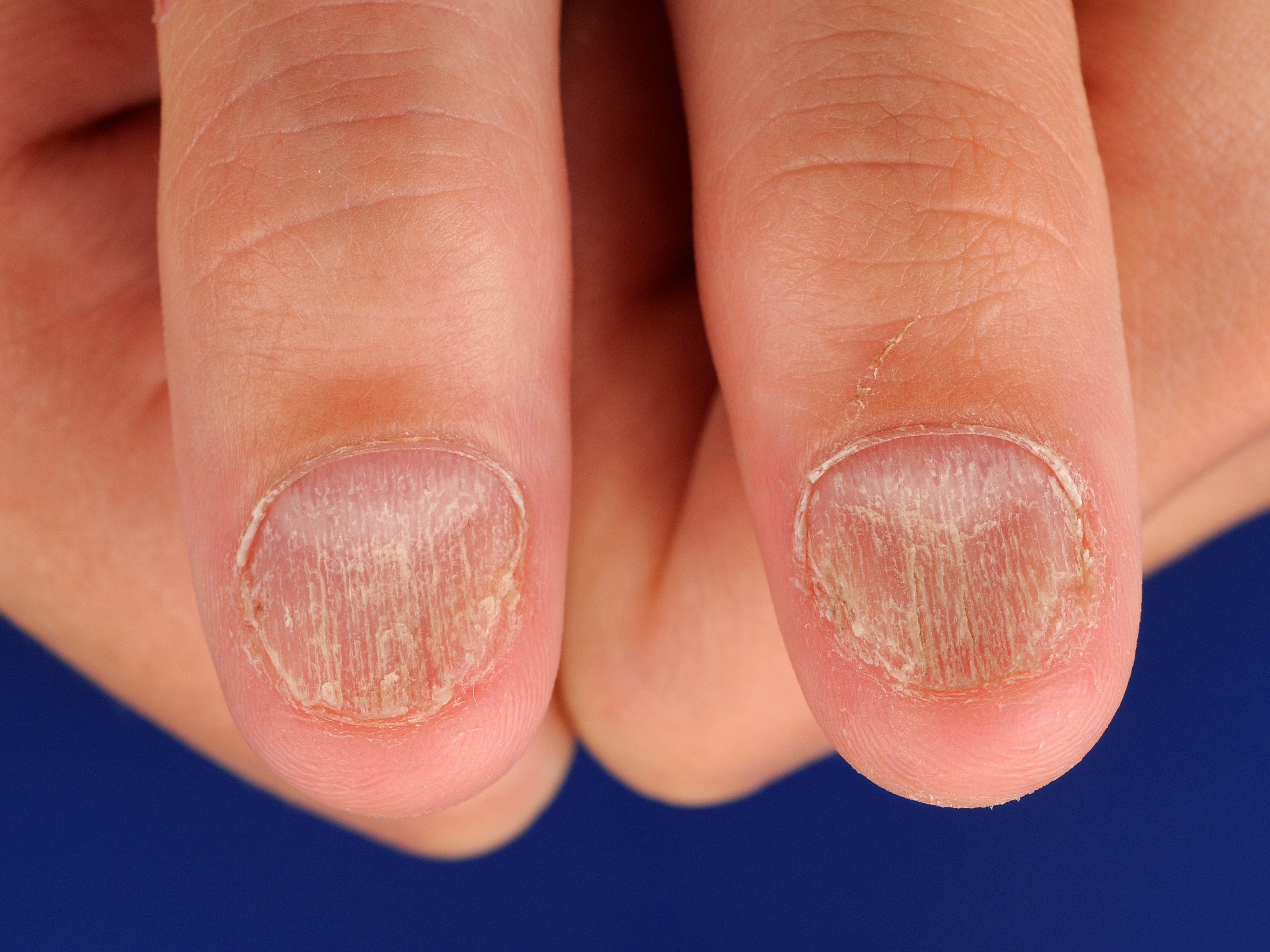 | - alopecia areata - psoriasis - lichen planus - atopisch eczeem / atopie - ichthyosis - immunoglobuline A deficiƫntie - vitiligo - andere inflammatoire huidziekten - ouderdom (kwetsbare nagels nno) - idiopathisch (geen oorzaak, inclusief twenty-nail dystrofie) |
