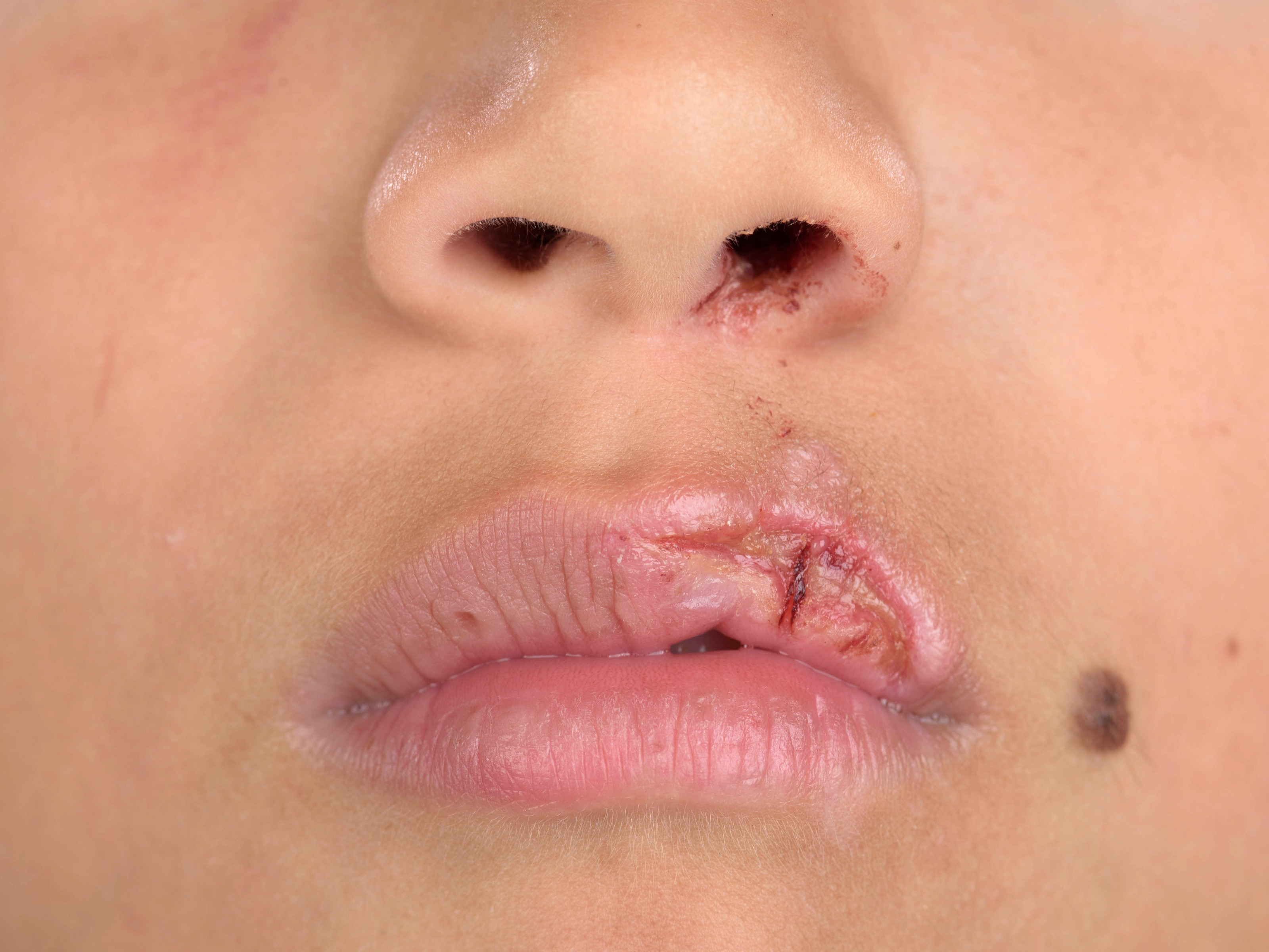 Vaak zijn het halvemaanvormige ulcera naast de neus, of op de neusvleugel, of