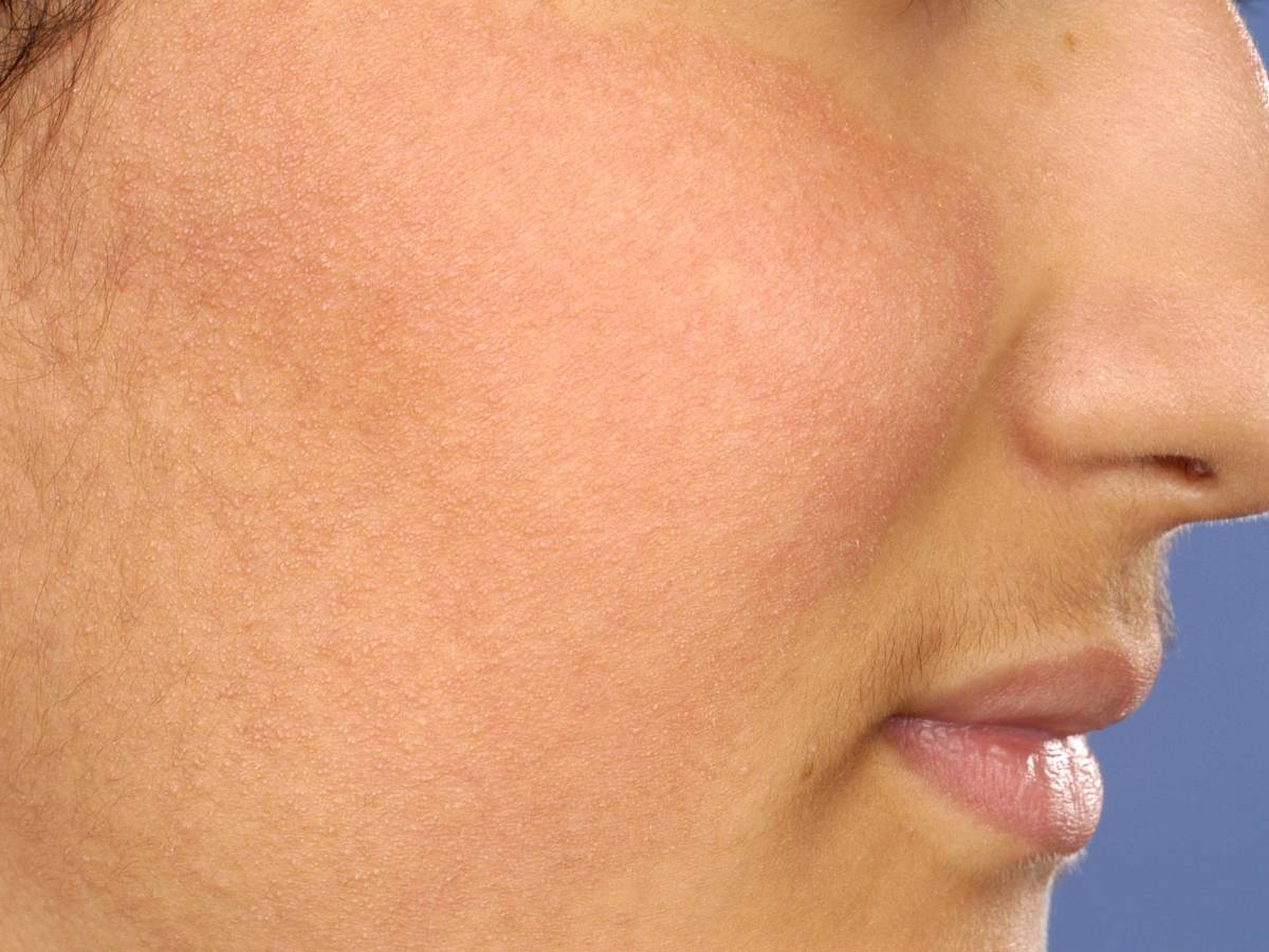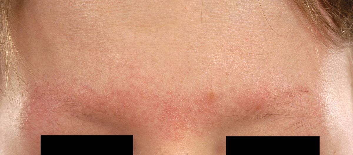 naast roodheid van de wangen en het gebied in en net boven de wenkbrauwen ook