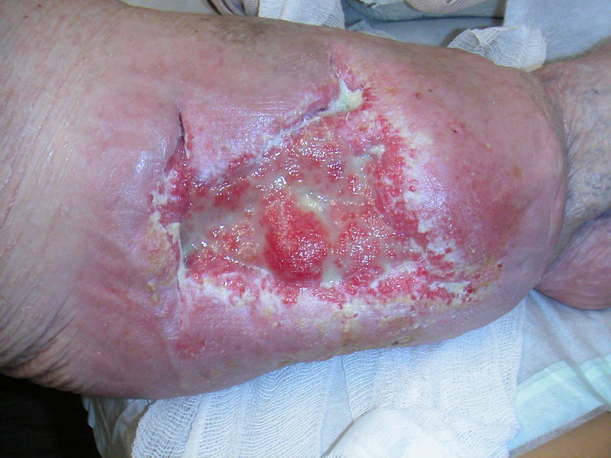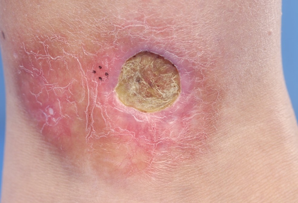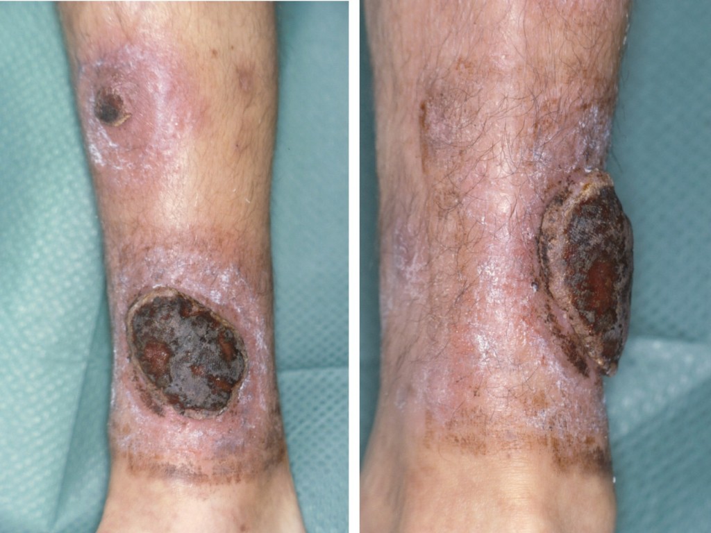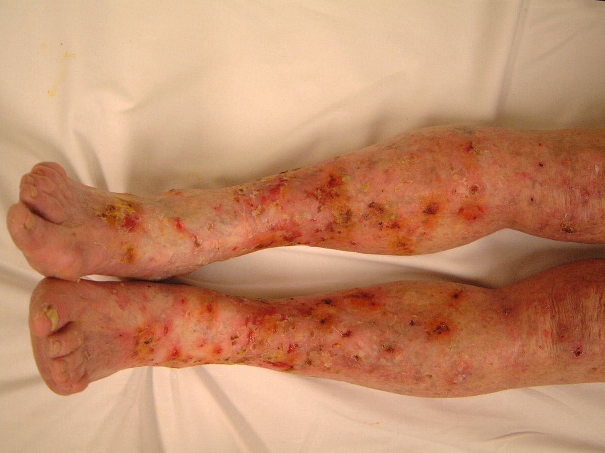 Ulcererende huidziekten - pyoderma gangrenosum - pyoderma vegetans - pyoderma vegetans bij hidradenitis suppurativa - vasculitis - panniculitis - periarteritis nodosa - erythema induratum (Bazin) - erythema elevatum diutinum - livedoid vasculopathie - calciphylaxis cutis - calcinosis cutis - ziekte van Degos (papulosis atrophicans maligna) - necrobiosis lipoidica - erythema exsudativum multiforme - Sweet syndroom - parapemphigus e.a. bulleuze dermatosen - m. Behçet - morbus Paget - heftige contactallergie - ulceratieve lichen planus - sarcoidose - SLE en CDLE - ziekte van Raynaud - chilblain lupus - perniones - sclerodermie - keratosis actinica - insectenbeten - trench foot - erytromelalgia - lymfoedeem - lipoedeem - pancreatic fat necrosis - hemangioma - Stewart Bluefarb syndrome - Langerhans cell histiocytosis