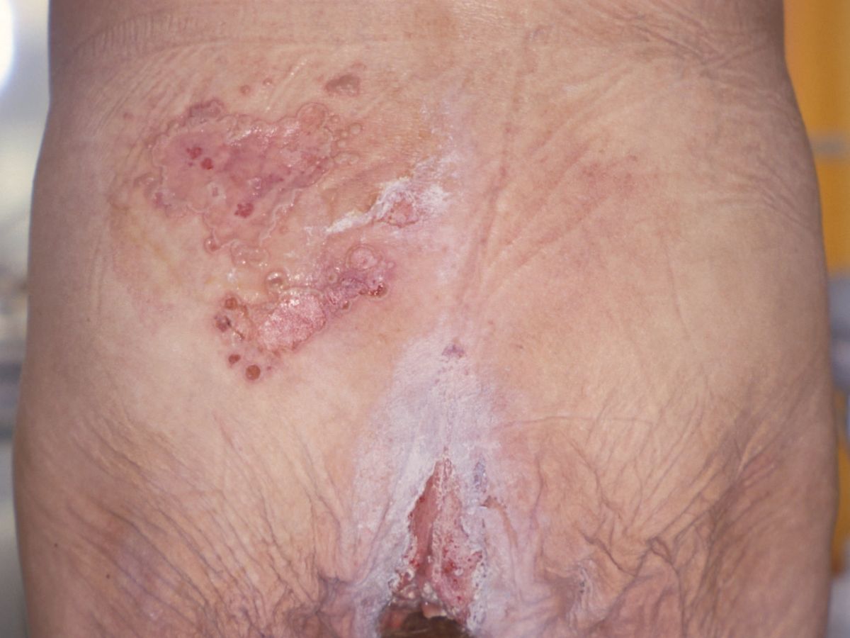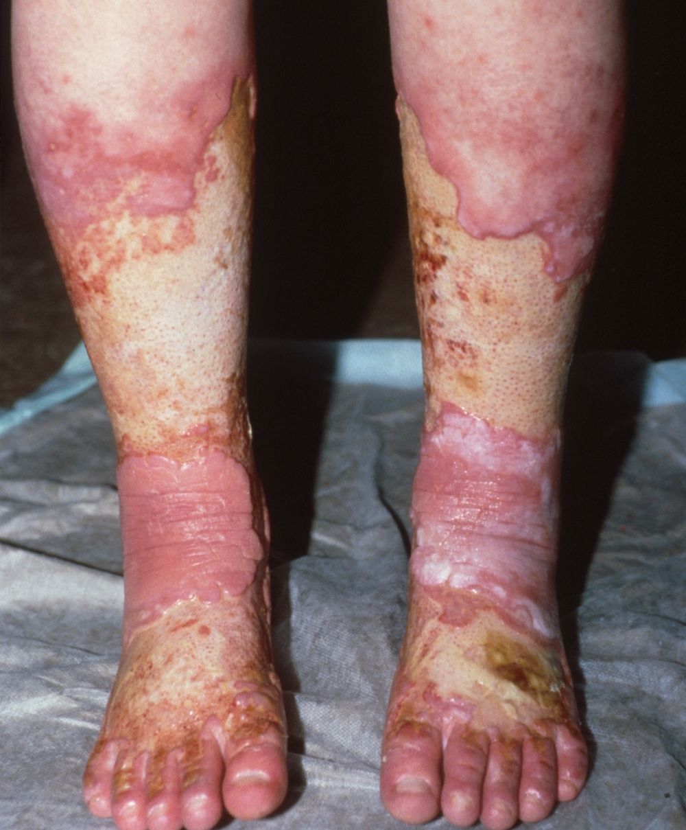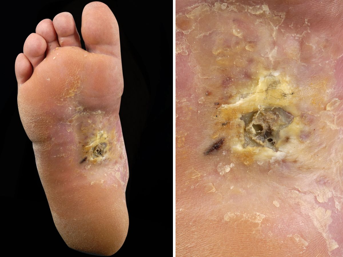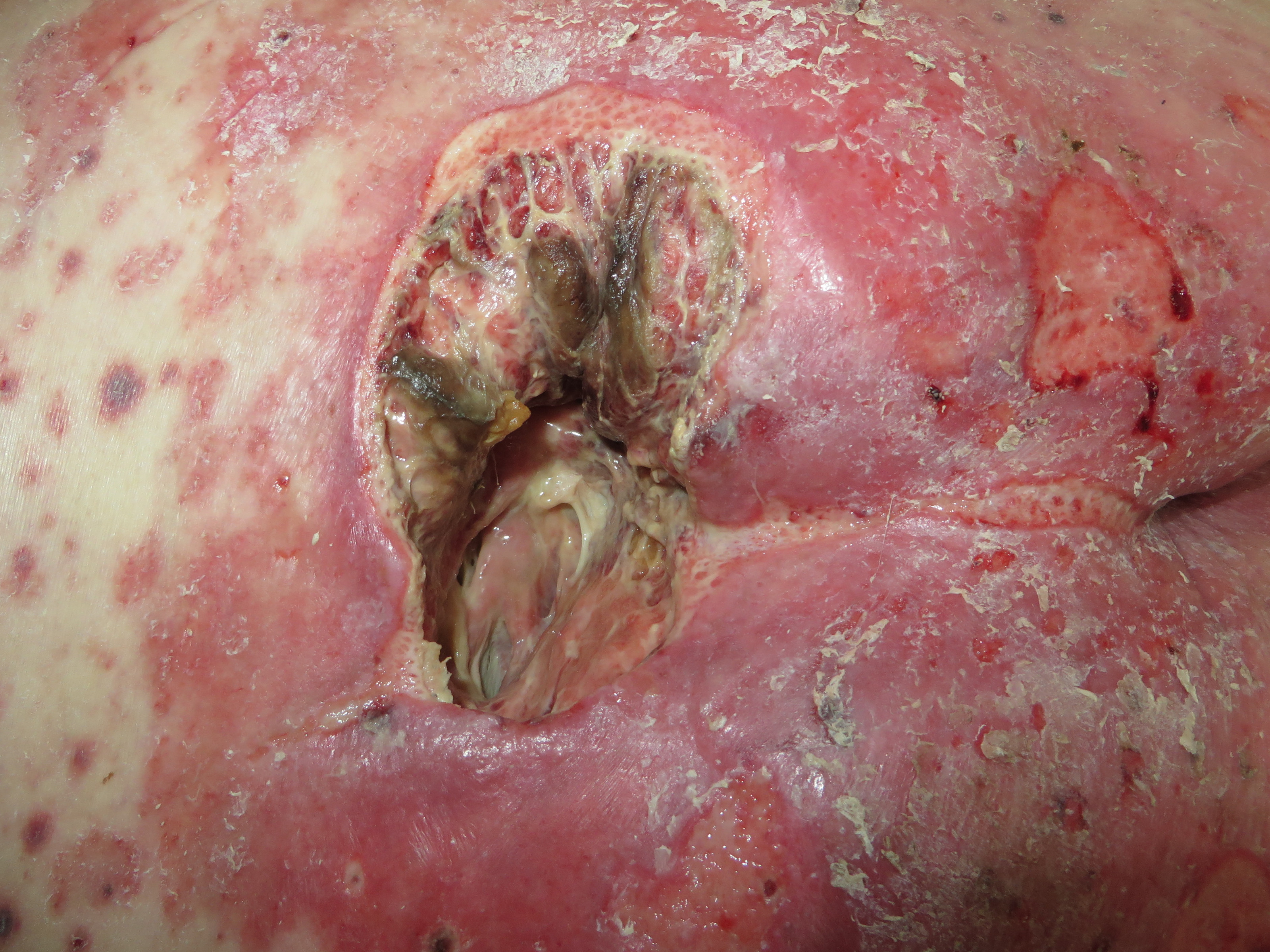 Ulcererende huidziekten - pyoderma gangrenosum - pyoderma vegetans - pyoderma vegetans bij hidradenitis suppurativa - vasculitis - panniculitis - periarteritis nodosa - erythema induratum (Bazin) - erythema elevatum diutinum - livedoid vasculopathie - calciphylaxis cutis - calcinosis cutis - ziekte van Degos (papulosis atrophicans maligna) - necrobiosis lipoidica - erythema exsudativum multiforme - Sweet syndroom - parapemphigus e.a. bulleuze dermatosen - m. Behçet - morbus Paget - heftige contactallergie - ulceratieve lichen planus - sarcoidose - SLE en CDLE - ziekte van Raynaud - chilblain lupus - perniones - sclerodermie - keratosis actinica - insectenbeten - trench foot - erytromelalgia - lymfoedeem - lipoedeem - pancreatic fat necrosis - hemangioma - Stewart Bluefarb syndrome - Langerhans cell histiocytosis
