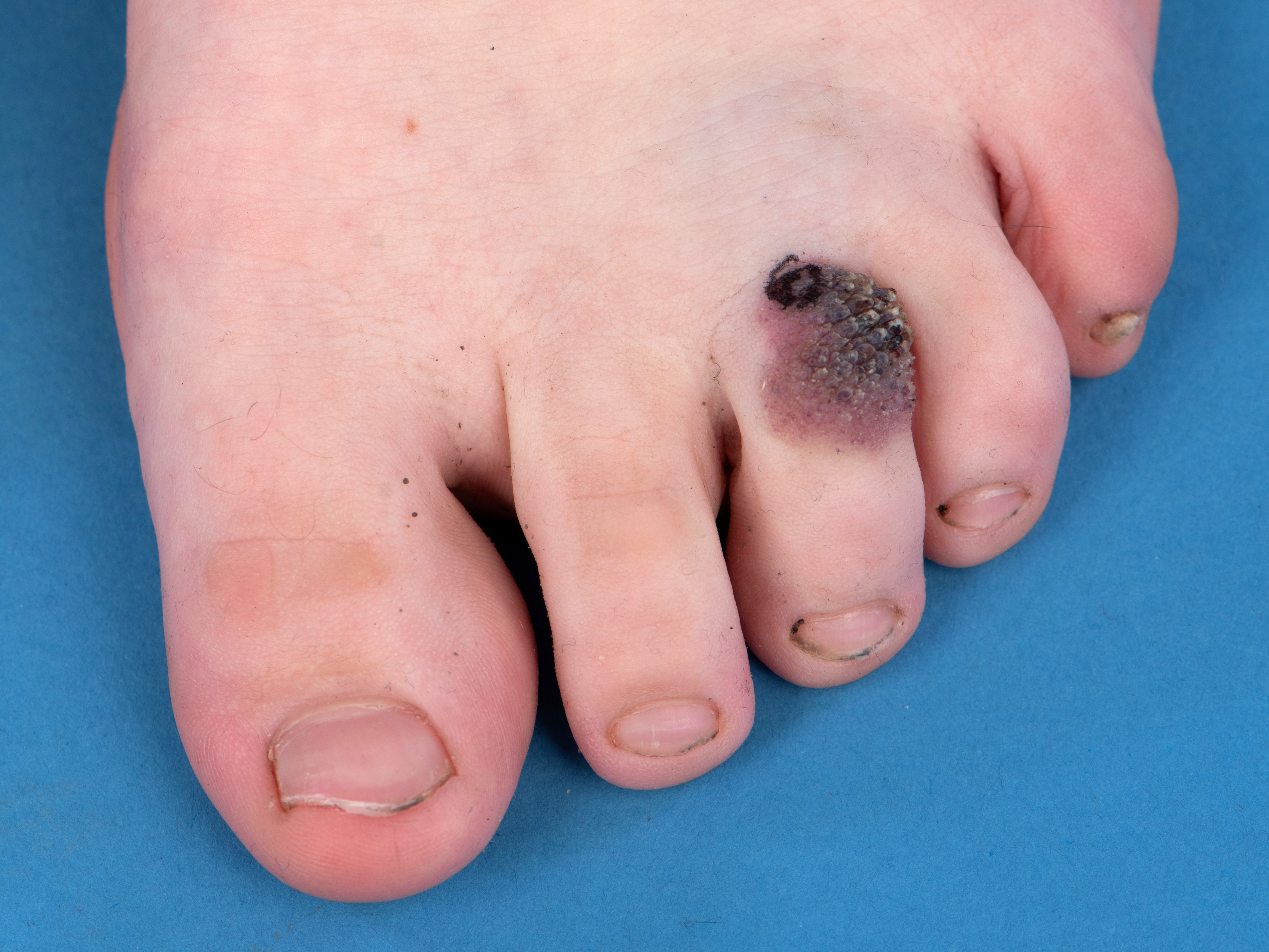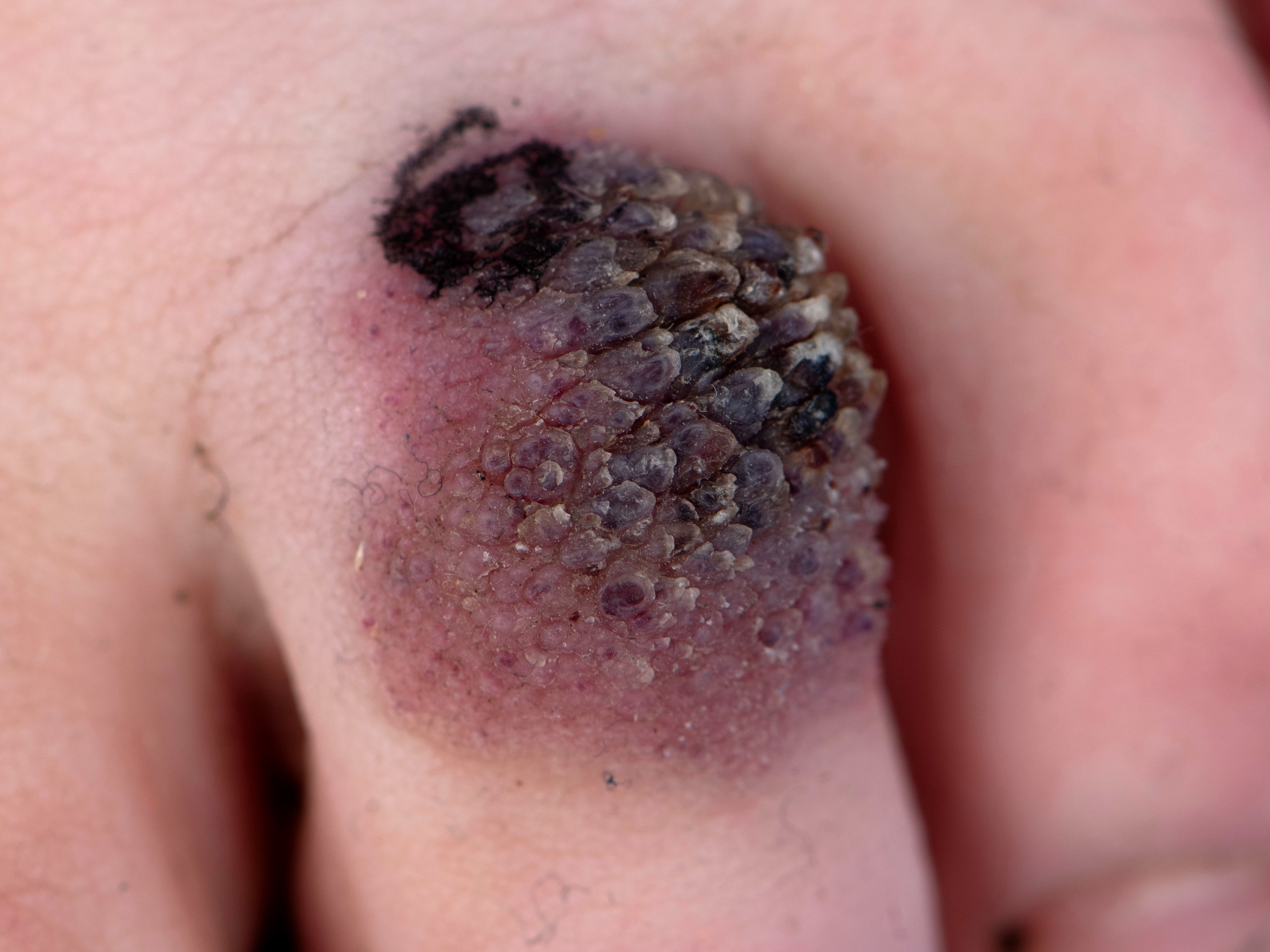 vaak na trauma of infectie ontstaat het verruceuze oppervlak. De grootte kan