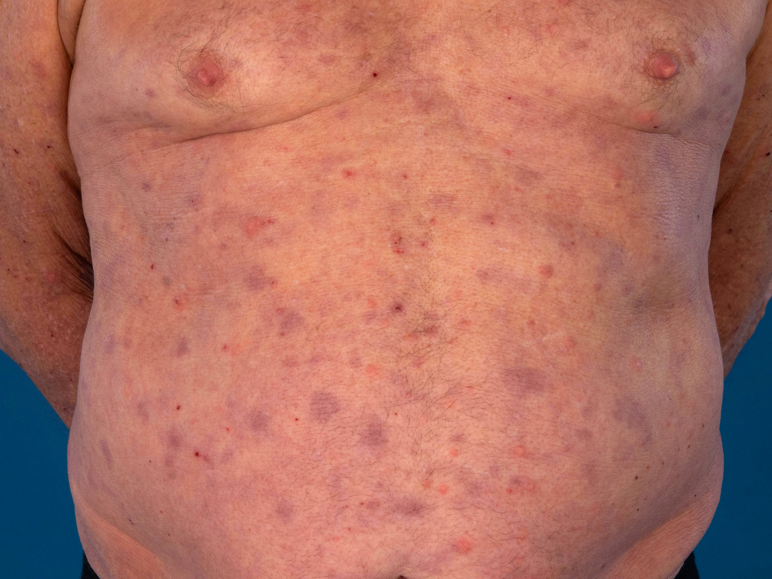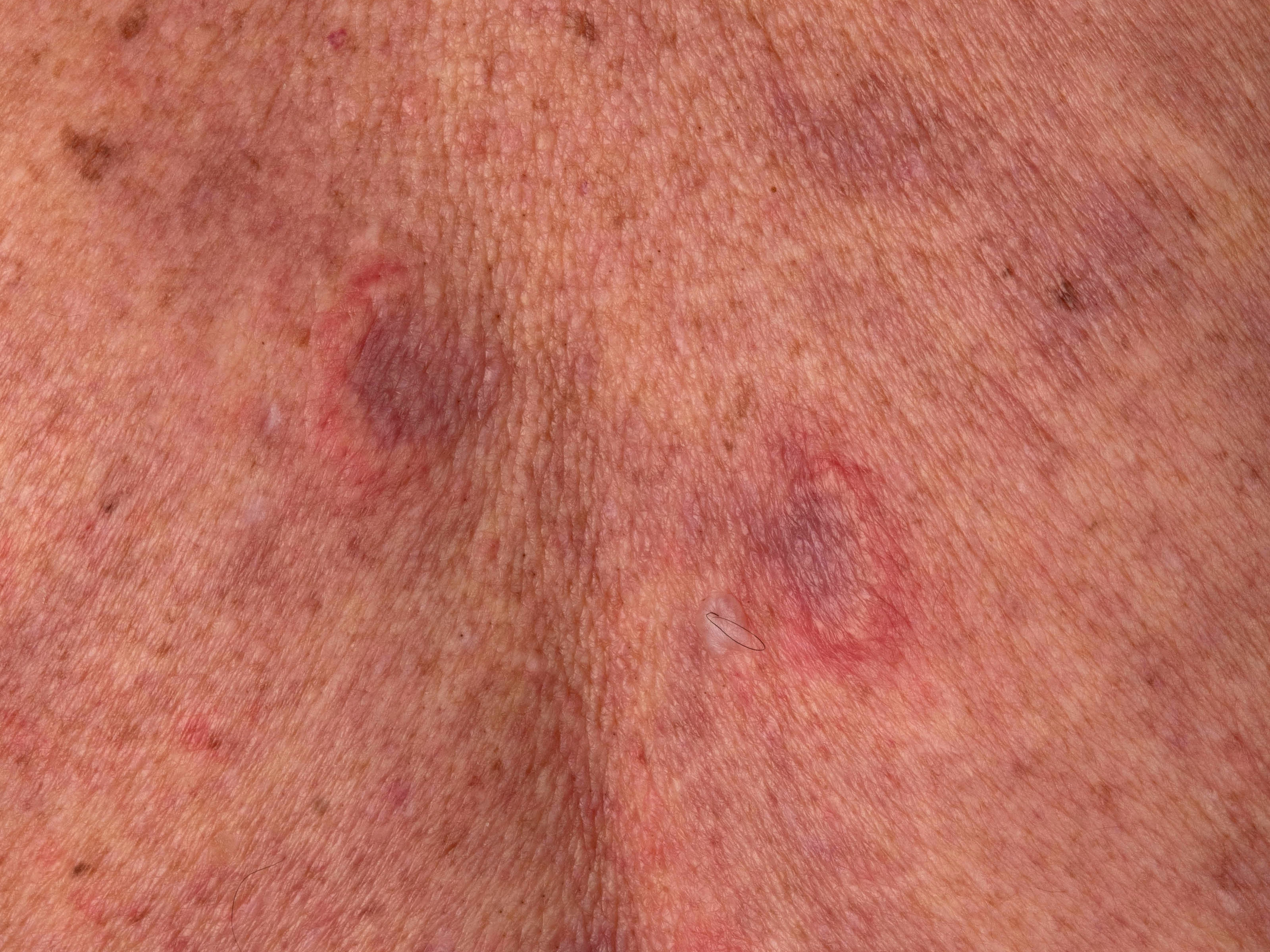 paarse papels, inflammatoire papels, vast aanvoelende erythemateuze, purpurische,