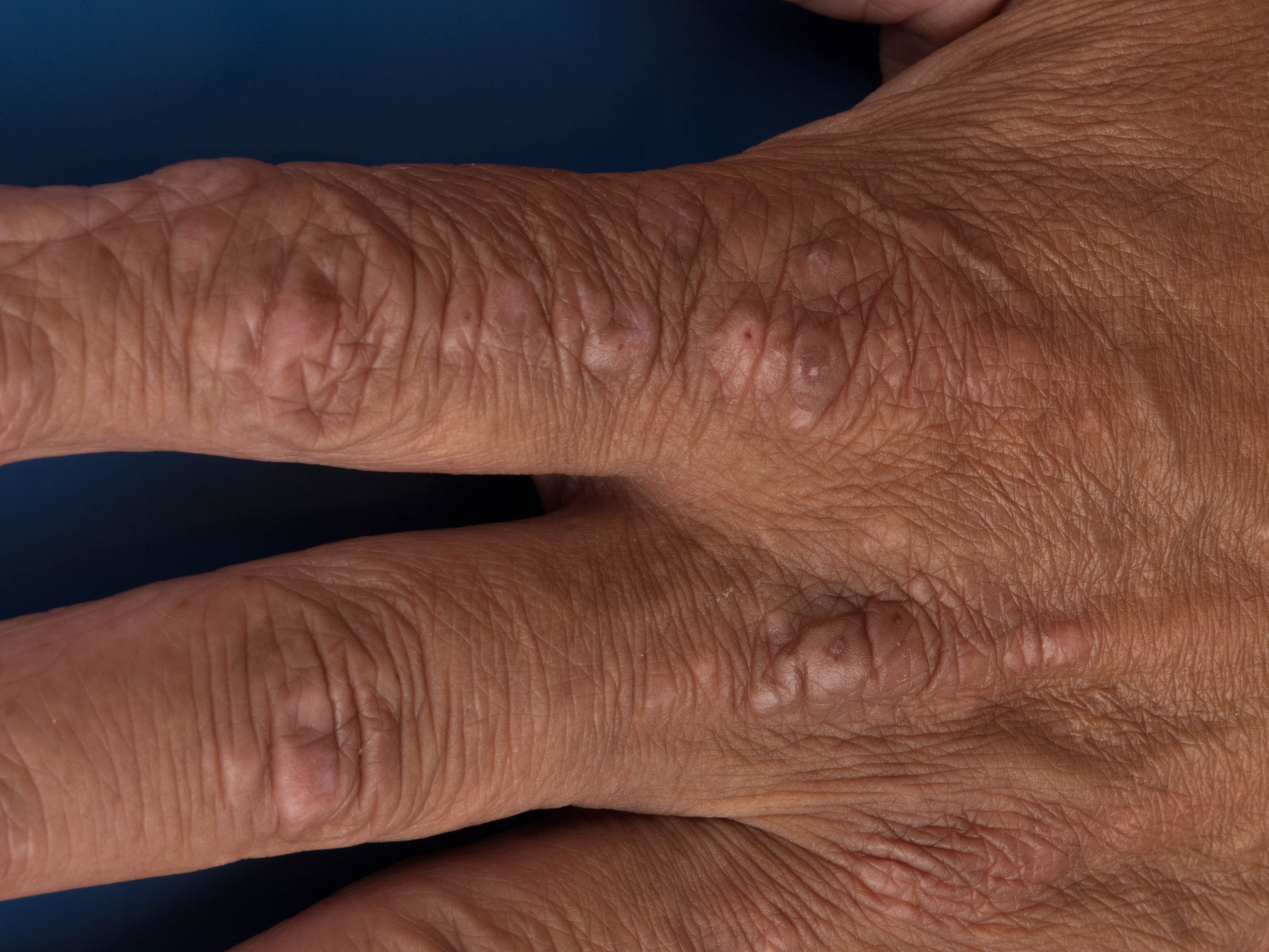 Xanthoma tendineum (peesschede xanthomen) zijn gelokaliseerd